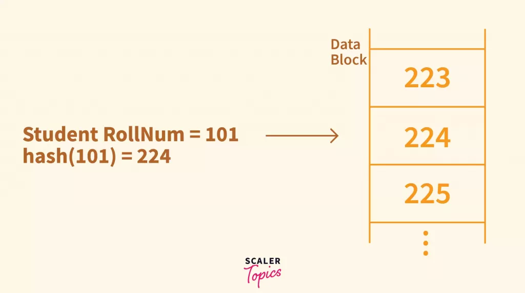 Now when the insertion is to be done, DBMS(Database Management System) first calculates the hash Index of Primary Key of Student(Roll Number). This hash Index can be used as the memory address where the student can be placed. It then places this student at that memory location.