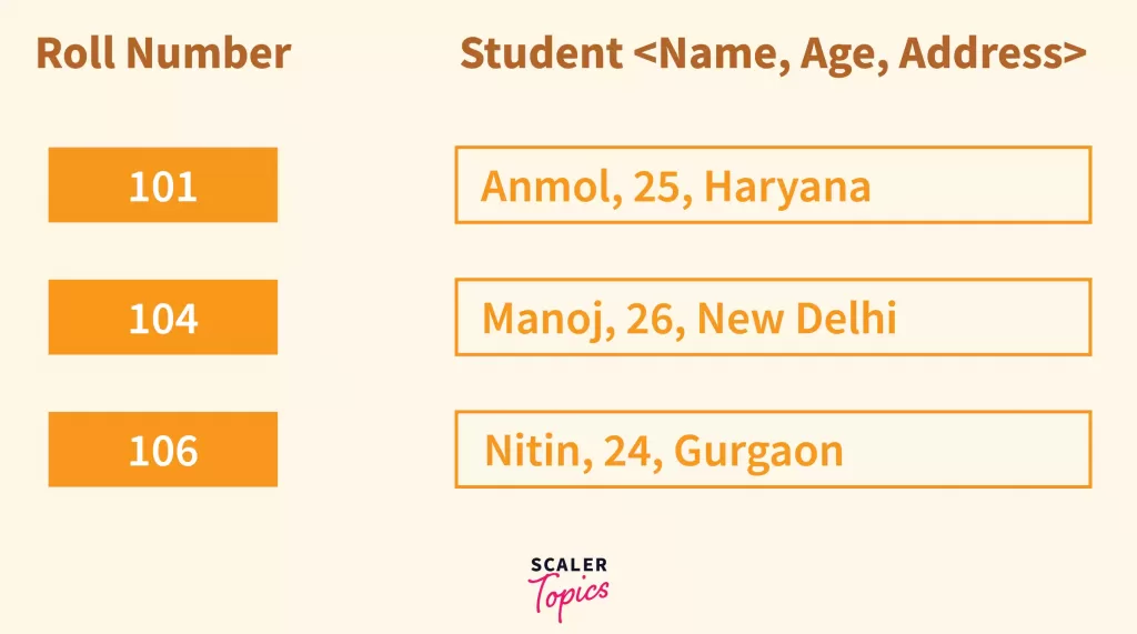 This can be boiled down to the fact that mapping helps to link an easier/smaller “key” (here Roll Number) to a particular “value”(here Student’s properties).