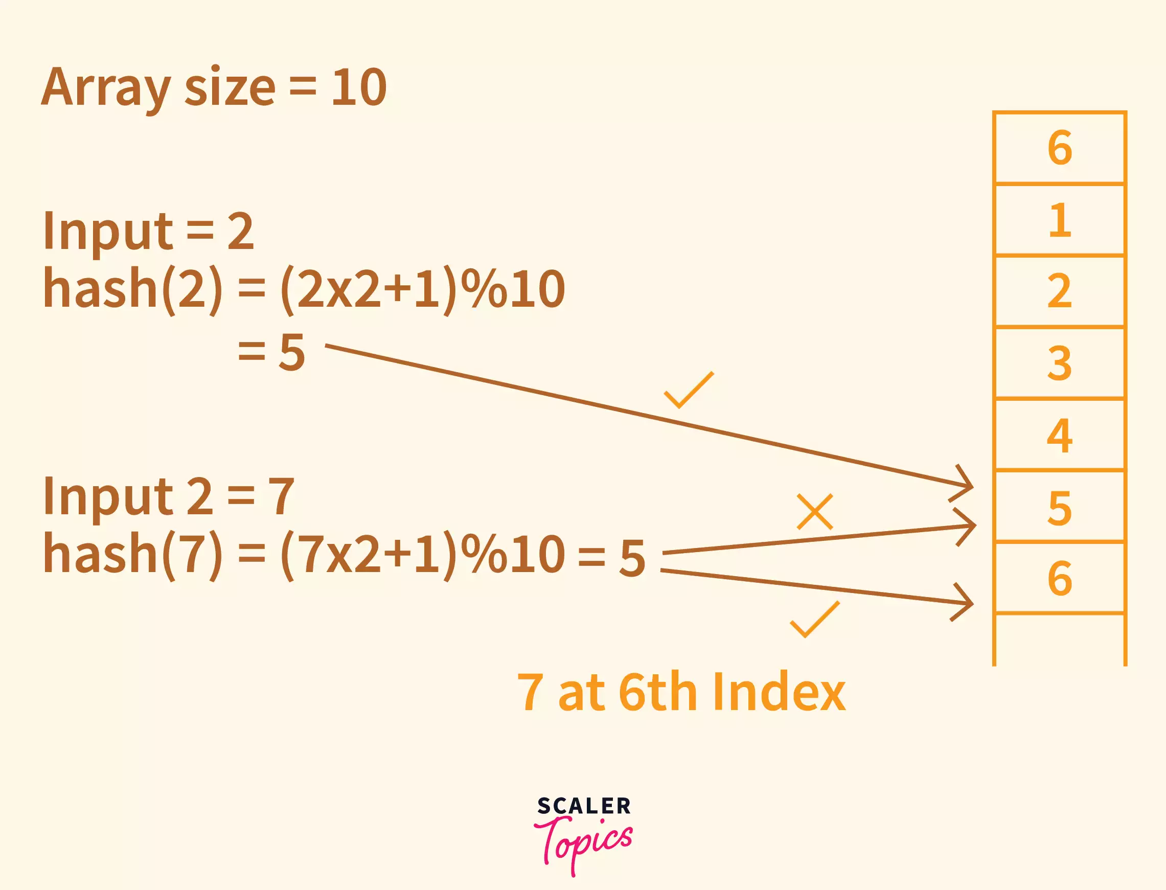 - In case the resultant index for 2 different inputs comes to be the same, it’s called a collision.