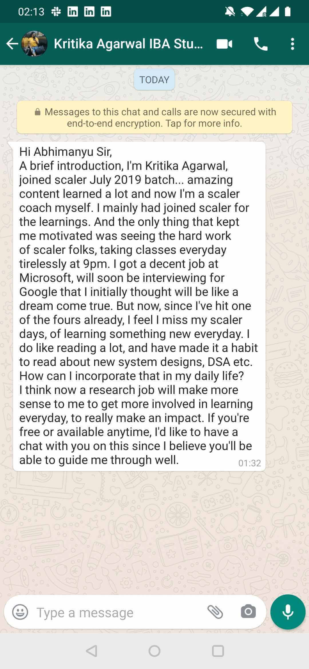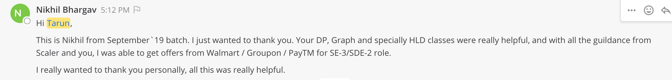 Connect live with our faculty, mentors, students and alumni, who help you get answers to a wide range of questions, ranging from importance of DSA / System Design to clearing interviews, building a career and achieving success.