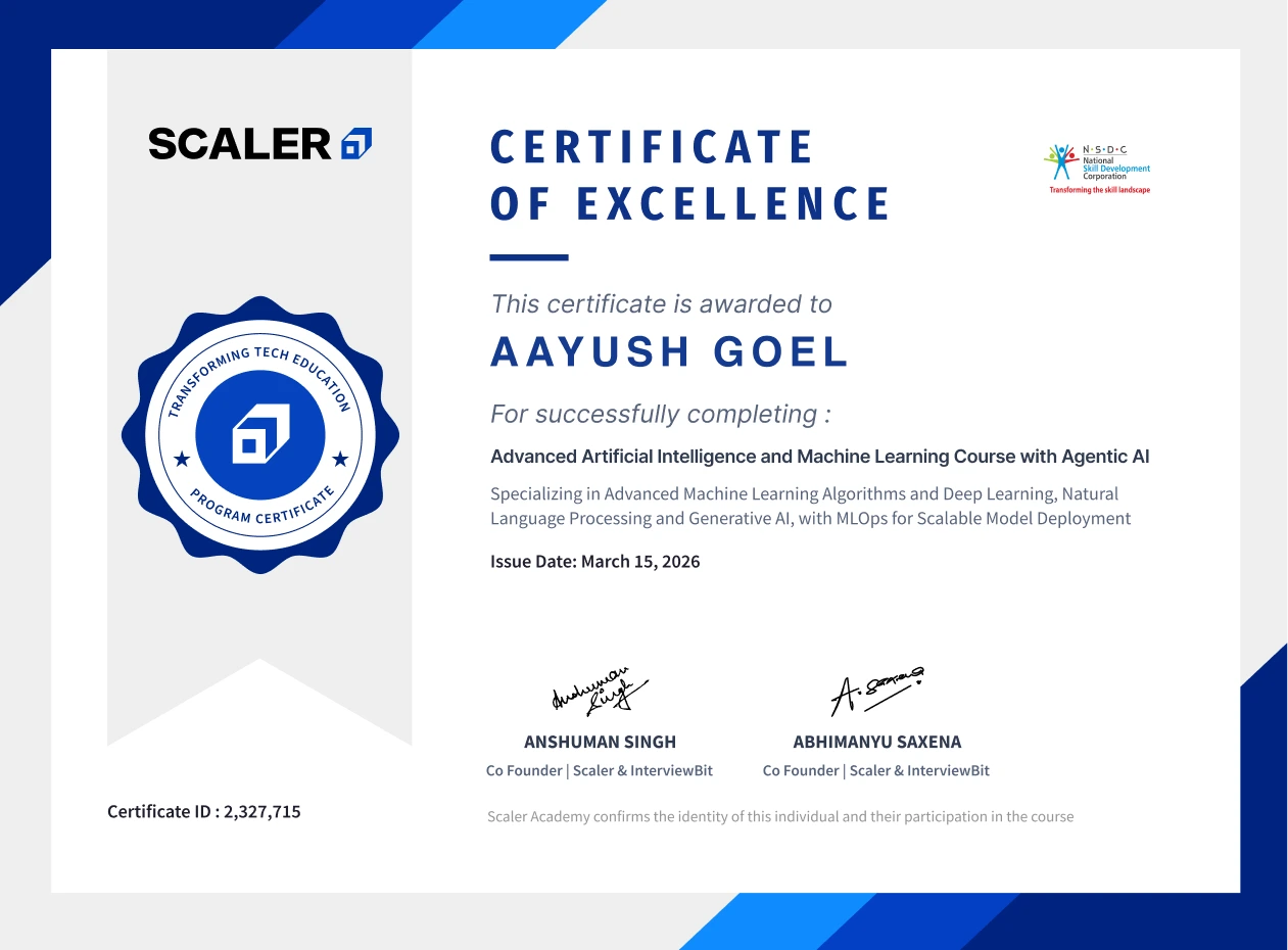 When your profile says Scaler Advanced AI & ML - recruiters at Amazon, Google and Microsoft know exactly what you had to do to earn it.