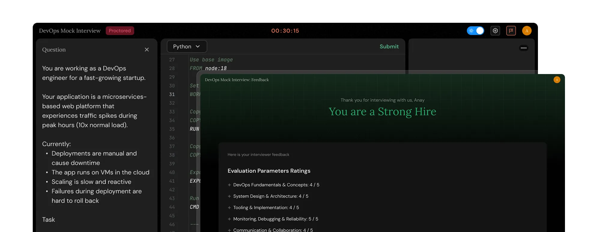 Senior engineers from top tech companies reviewing your work live