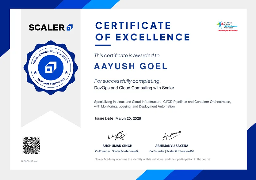 When your profile says Scaler DevOps, Cloud Computing & Cybersecurity - recruiters at Amazon, Google and Microsoft know exactly what you had to do to earn it.