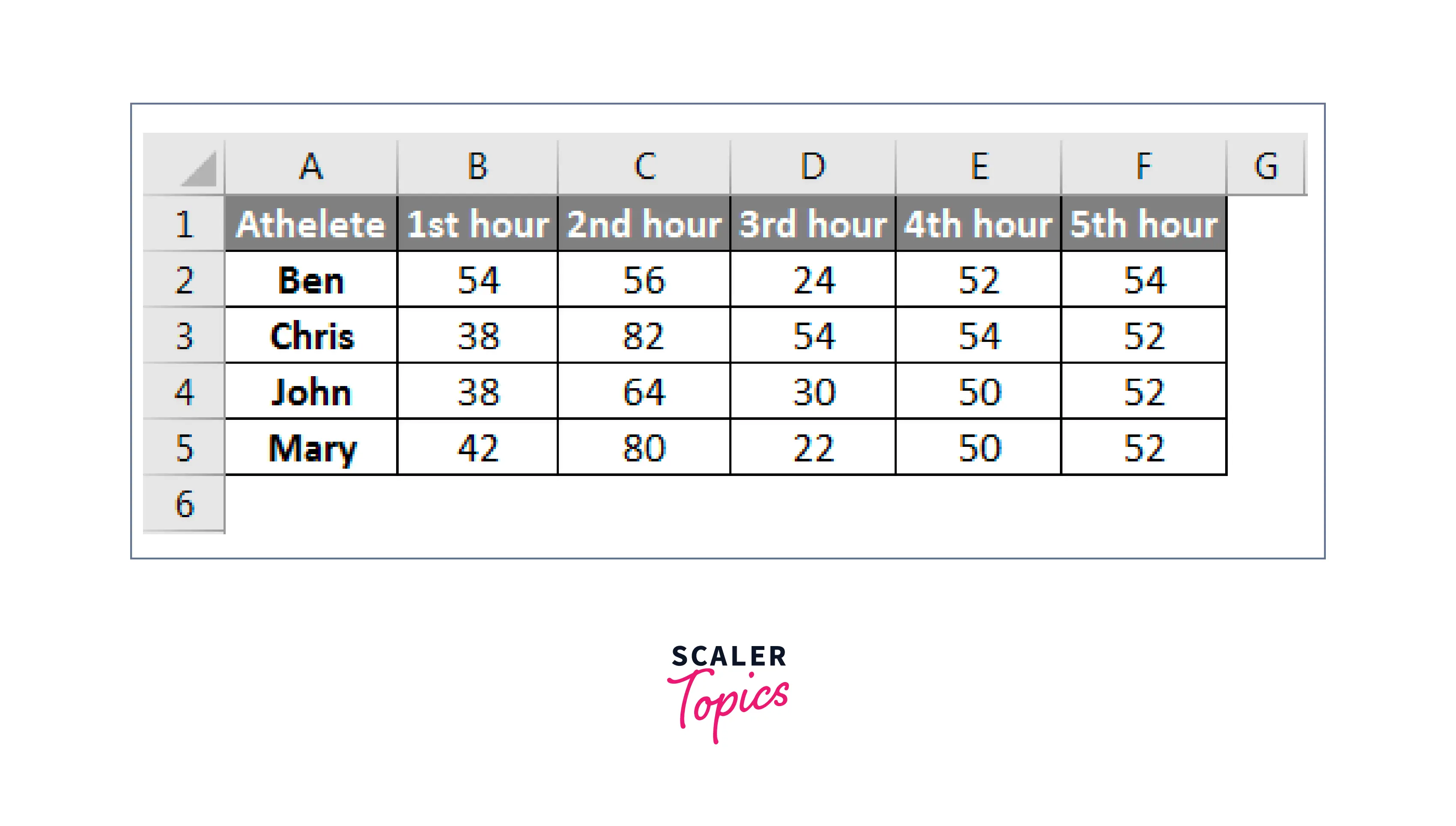 In this example, we will use a set of data that contains the student's climbing distance in meters for consecutive 5 hours.