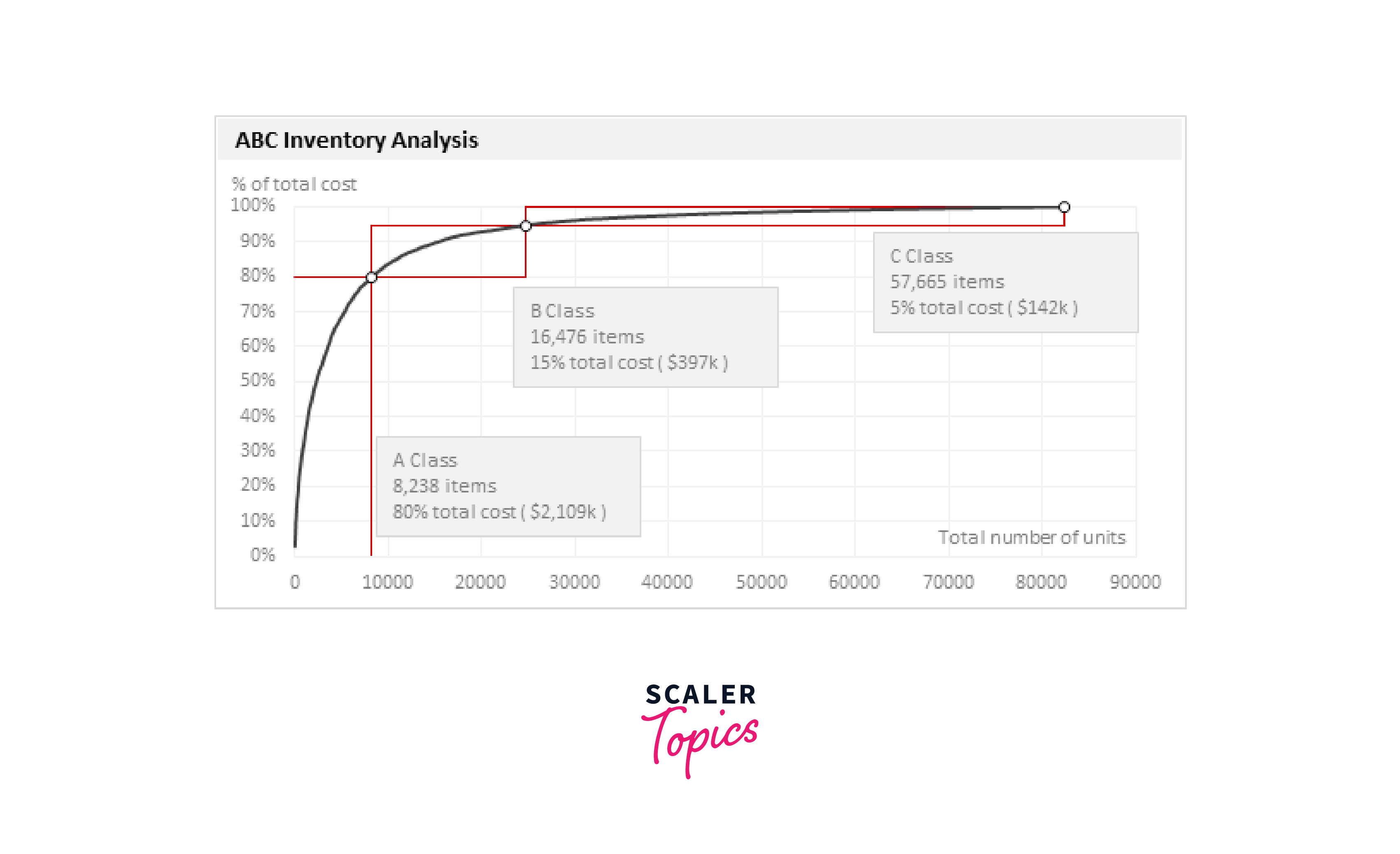 ABC analysis formula is one of the most popular methods for comprehending and classifying inventories. Consider yourself managing inventories at a facility that produces luxury, extremely expensive autos. There are many pieces (4,693) needed to put each car together. Some components cost thousands of dollars each, while others are inexpensive (50 cents per part). How can you then ensure that your inventory tracking efforts are streamlined so that you spend more time on expensive items and less on parts that cost 50 cents each? ABC analysis example is useful in this situation.