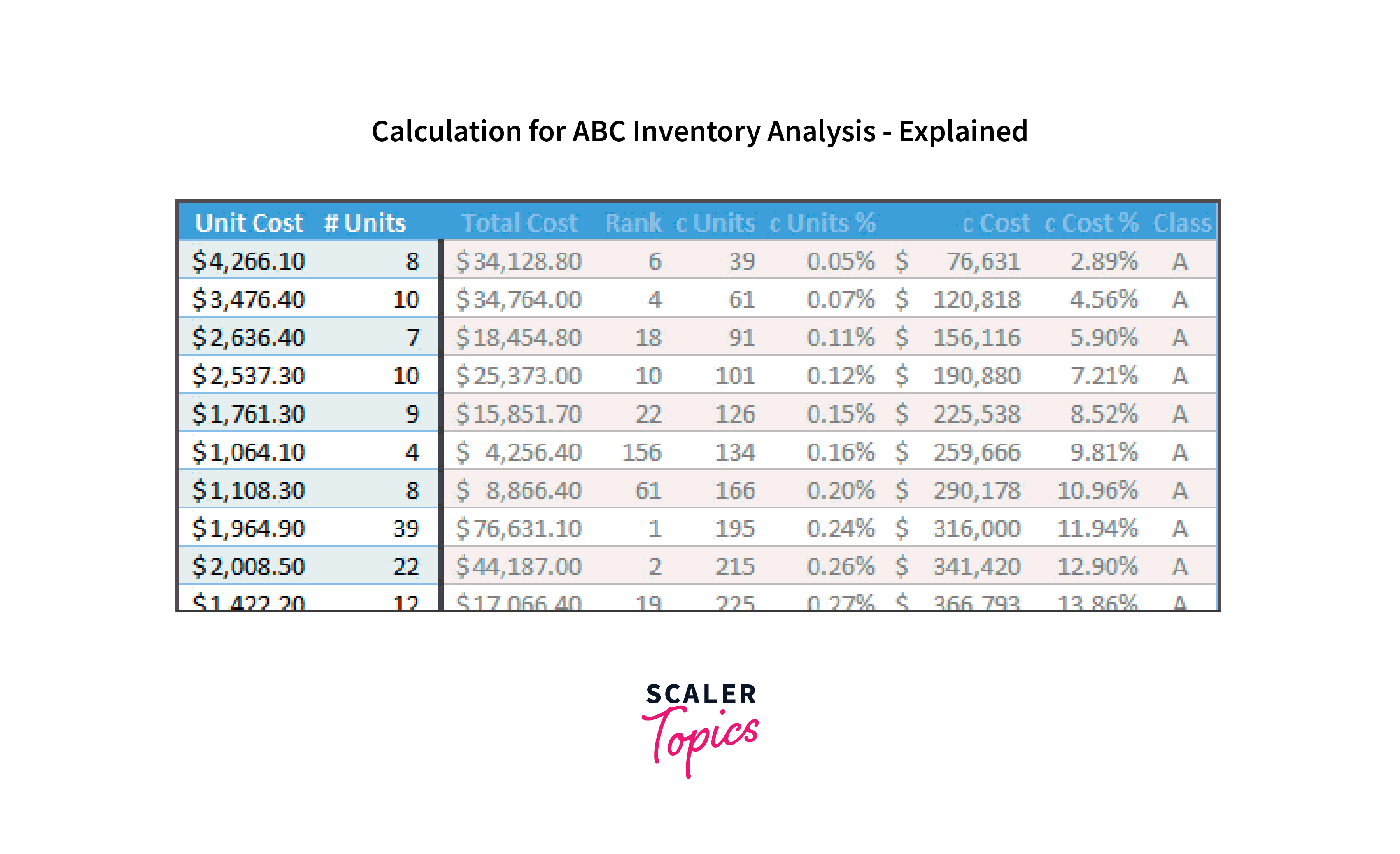 In order for management to focus on inventory items with high inventory costs, the primary goal of ABC analysis formula of inventory control is to identify products with high cost of inventory. It offers business owners insight into the worth of their inventory and points out areas where too much or too little time and effort is being spent.