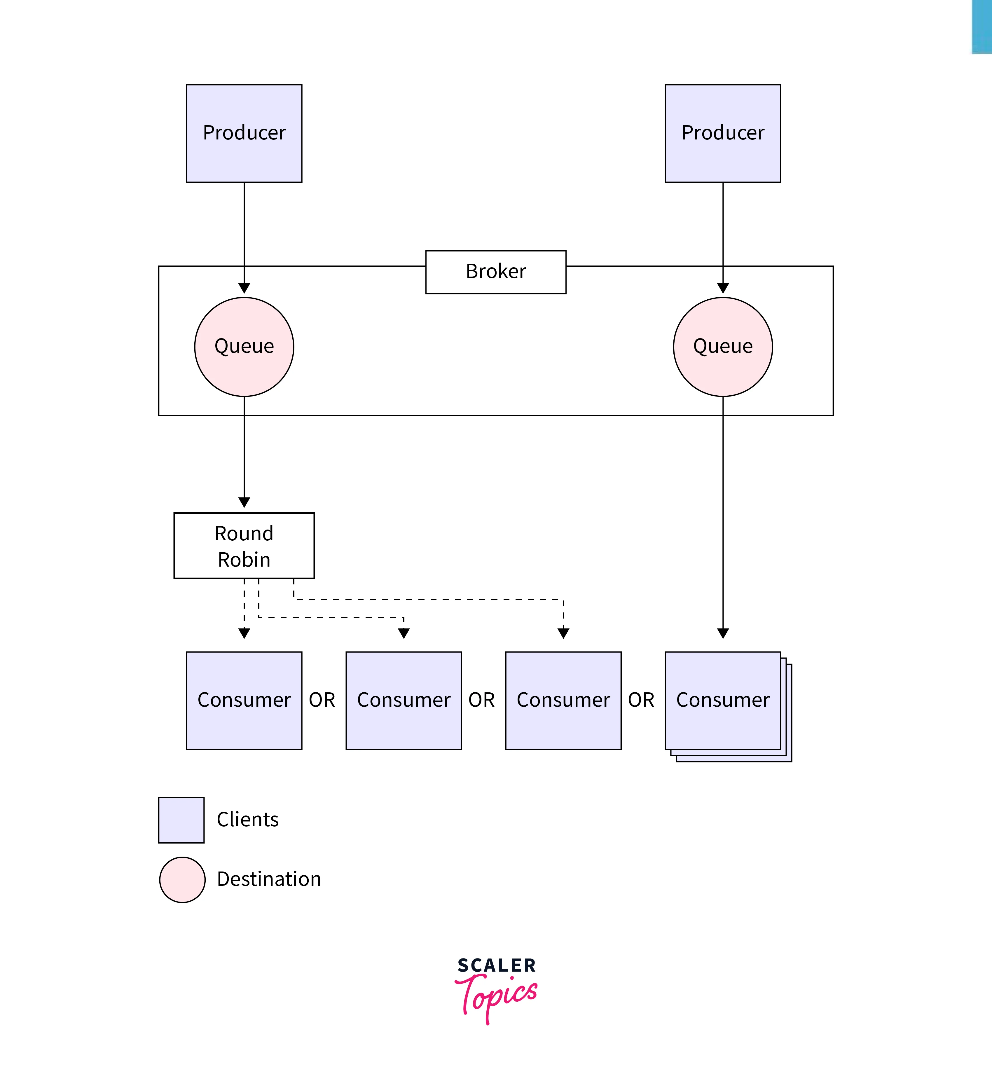 - Both ActiveMQ versions support point-to-point messaging, in which the broker routes each message to one of the available consumers in a round-robin pattern, as well as publish/subscribe (or "pub/sub") messaging, in which the broker delivers each message to every consumer who is subscribed to the topic (in ActiveMQ Classic) or address (in ActiveMQ Express) (in ActiveMQ Artemis).