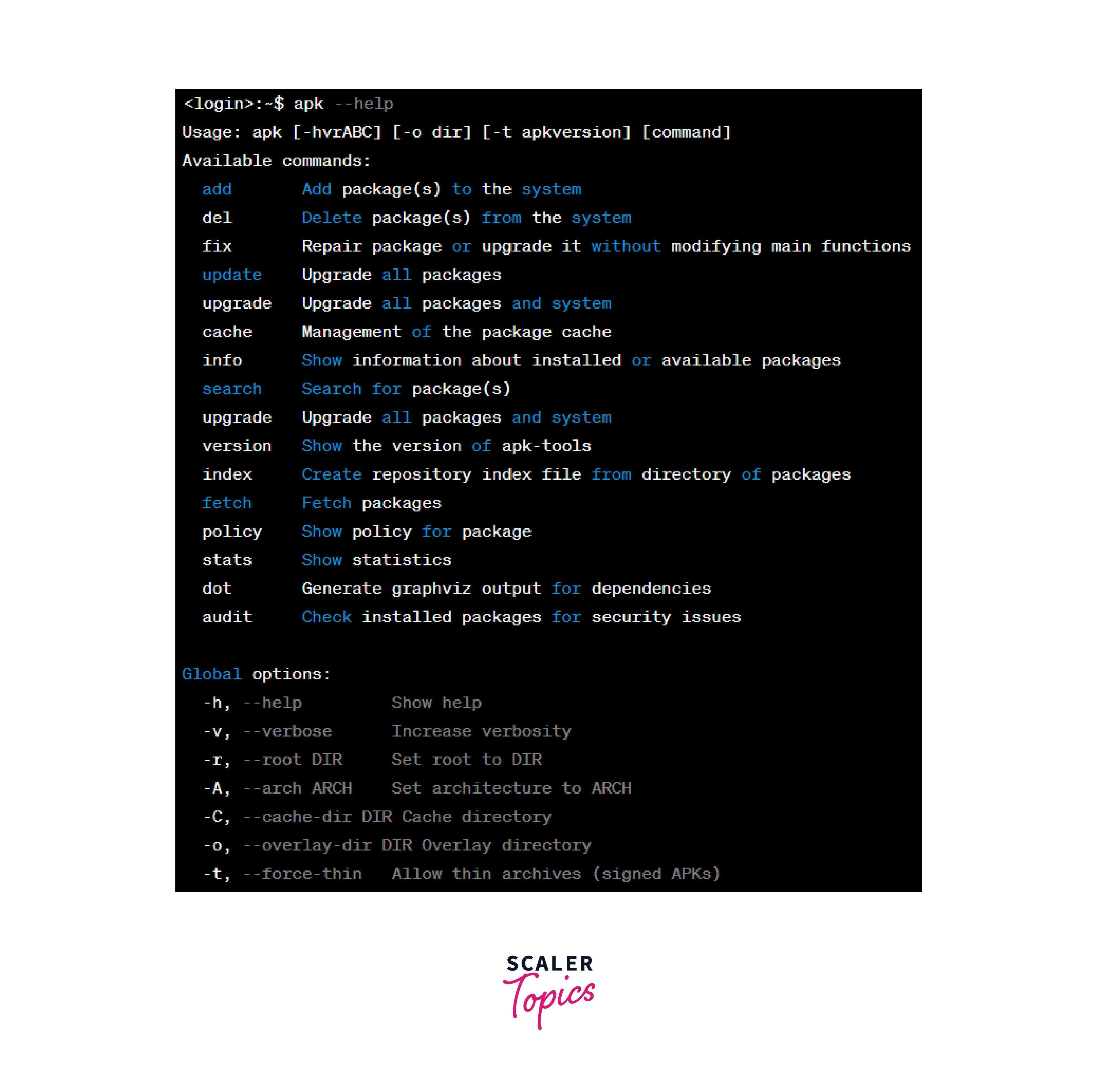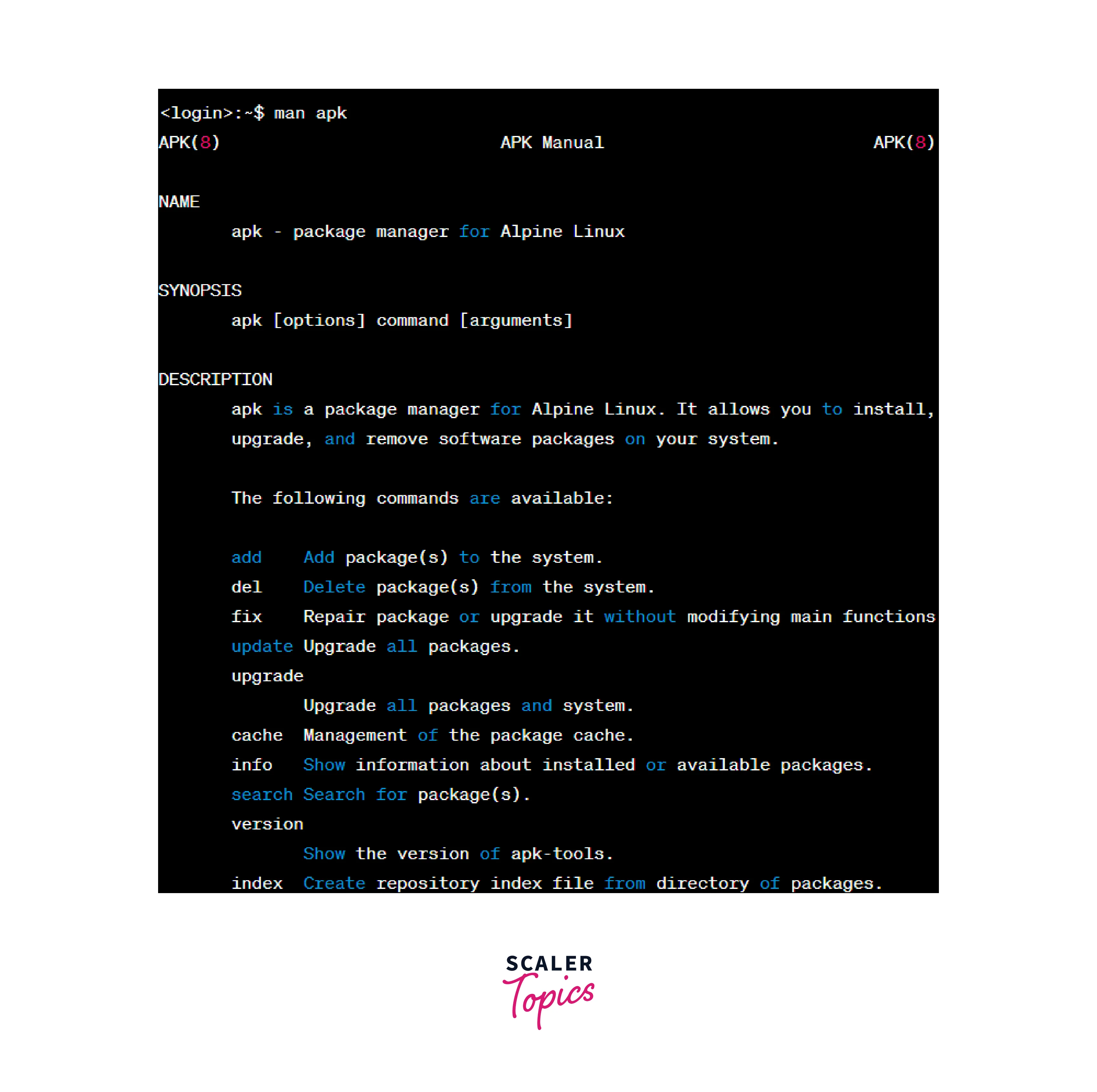 - Then, we discussed what are the commands for Alpine Linux Package Management: