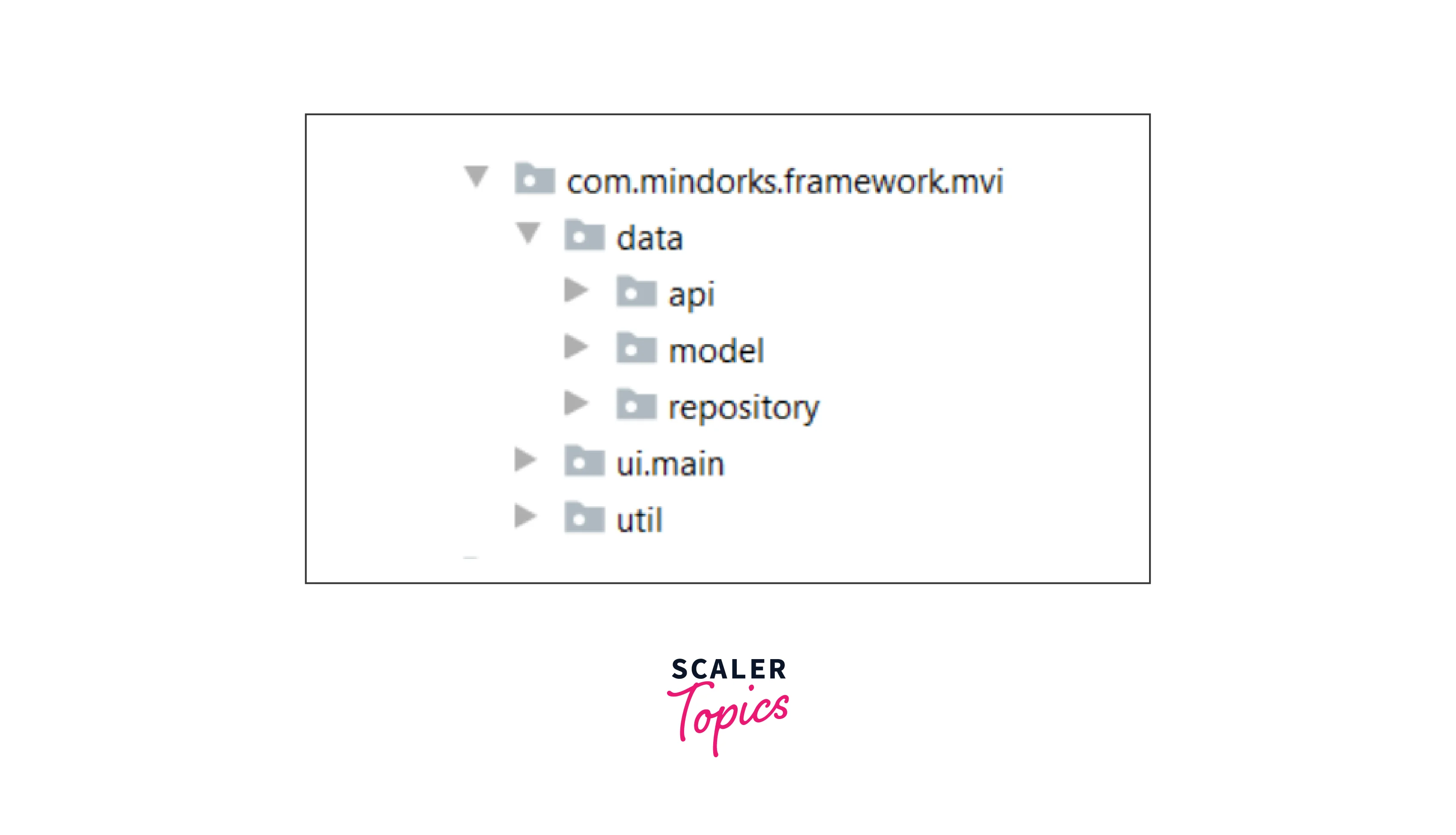 Step 2: Define Project Structure Define the project structure based on the separation of concerns in the MVI architecture. Typically, you'll have separate packages for the Model, View, and Intent components. Additionally, you may have packages for data sources, repositories, and other relevant modules.