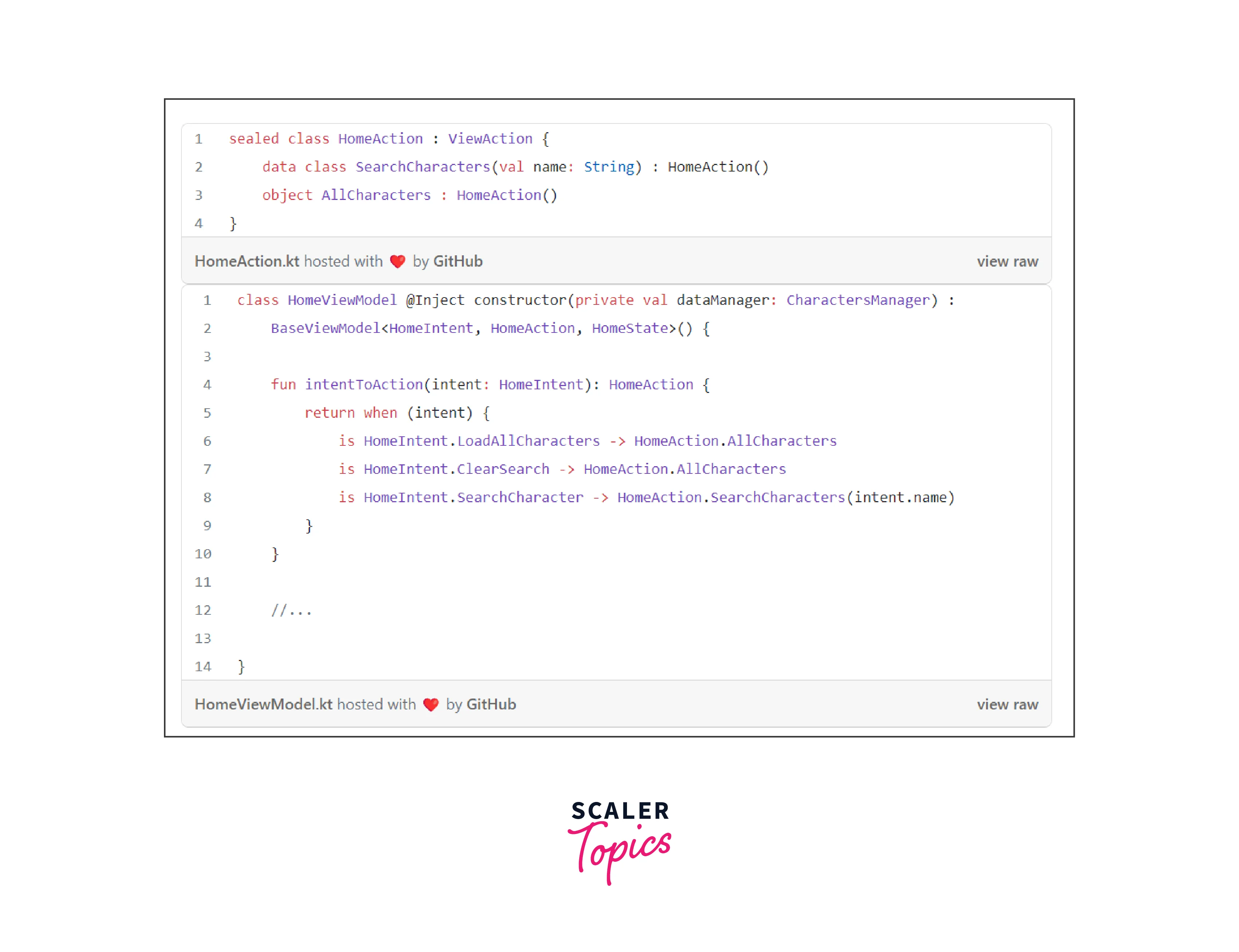 • Intent: The Intent component in MVI represents the user's intention or action within the application. It encapsulates the user interactions captured by the View and serves as a signal to the Model for state updates or other operations. Intents are dispatched from the View to the Model. When the Model receives an Intent, it processes the Intent and produces a new state based on the current state and the nature of the Intent. The new state is then emitted by the Model, notifying the view that a state change has occurred. The View observes this state change and re-renders the UI to reflect the updated state.
