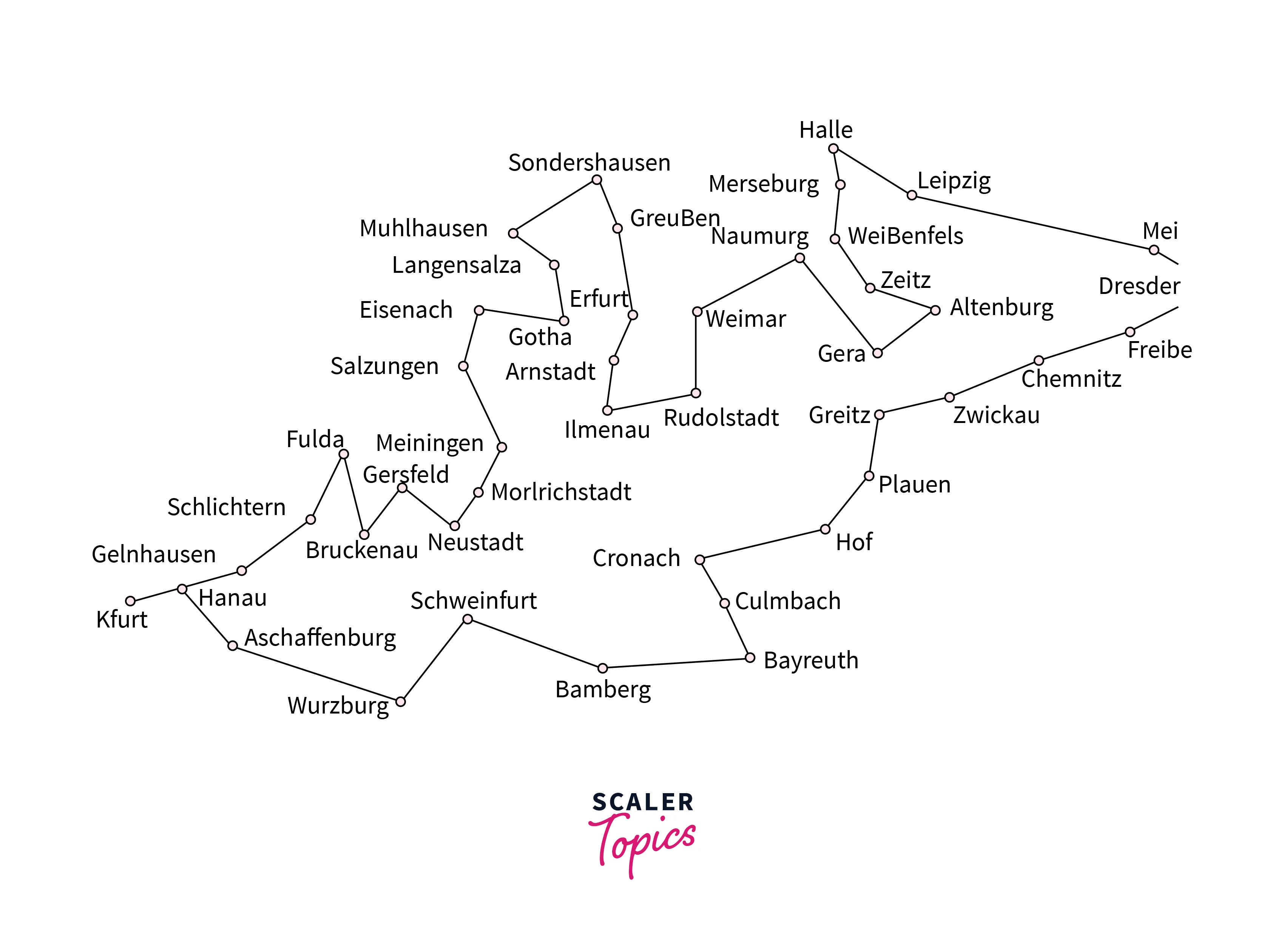 Travelling Salesman Problem is a renowned routing problem that involves sequential decision-making and can be addressed by the main components of Markov Decision Process. The salesman becomes the agent, and the available routes become the set of actions. Rewards can be specified as the cost of traversing the routes, and the end goal is to search for an optimal policy that minimizes the cost for the entire duration of the trip. An example solution of the Travelling Salesman Problem over the map of France is shown in Figure.