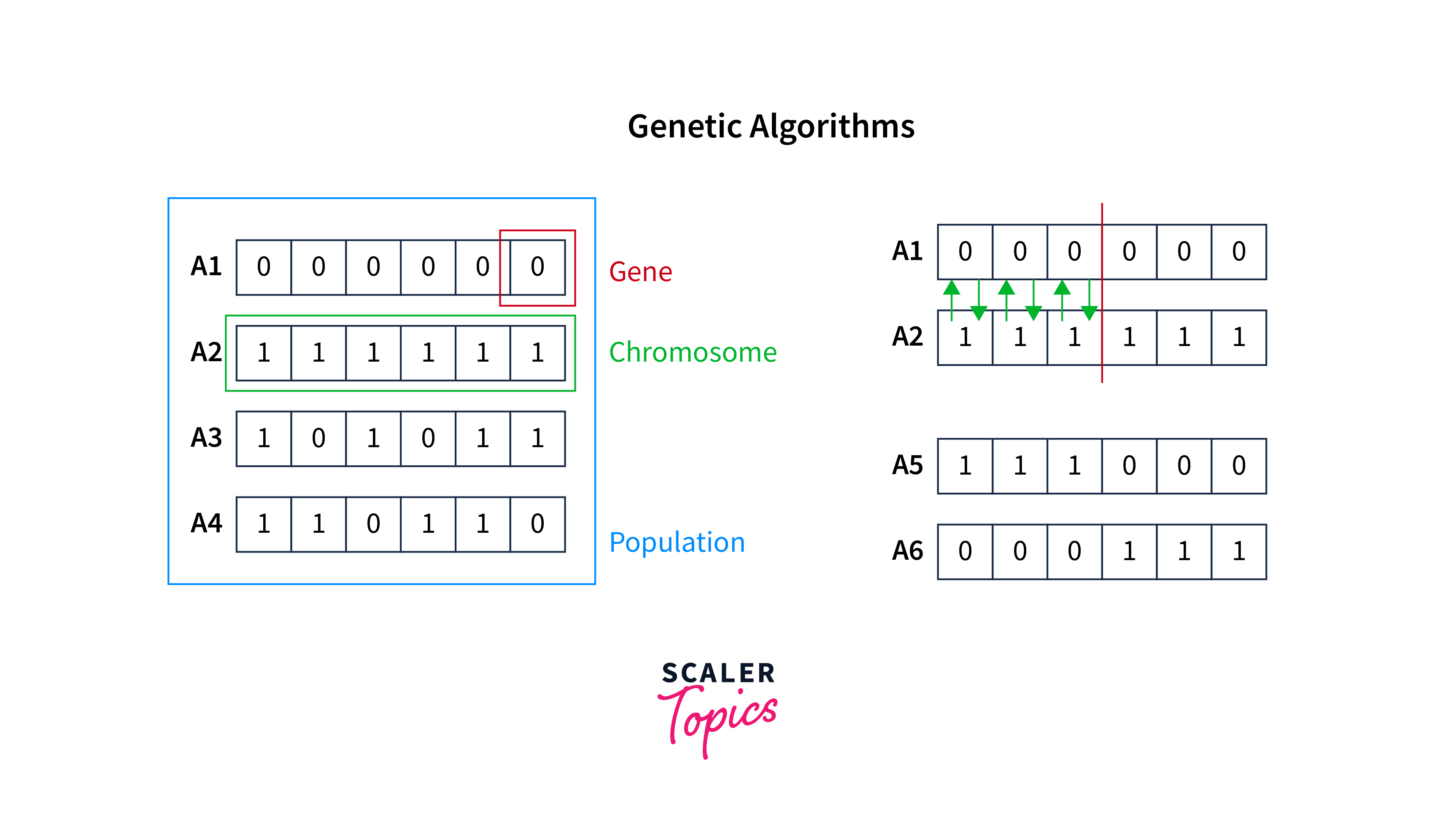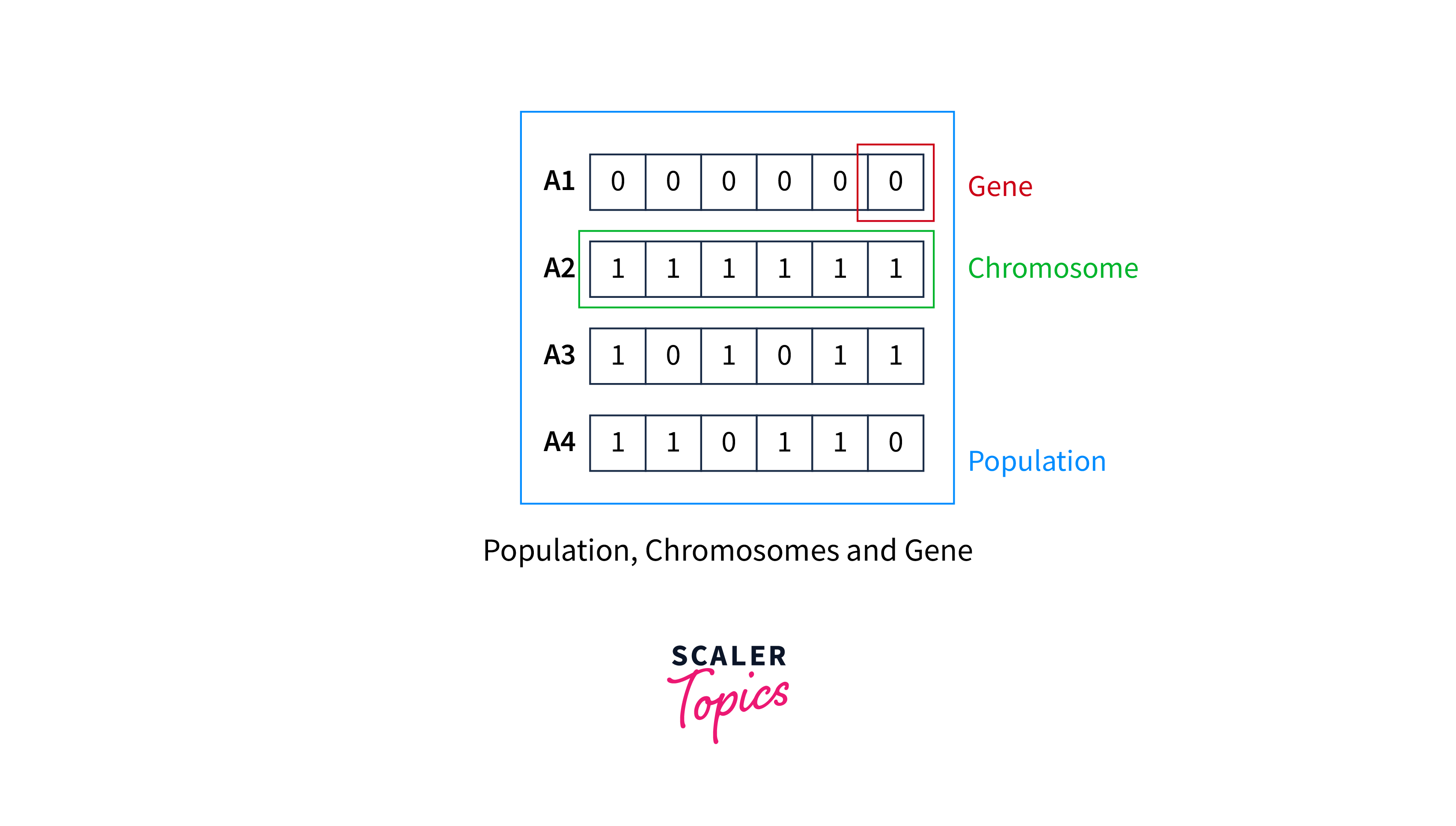 - Initialization or initial population: The process begins with a set of individuals called a Population. Each individual is a solution to the problem you want to solve. A population of potential solutions is randomly generated.