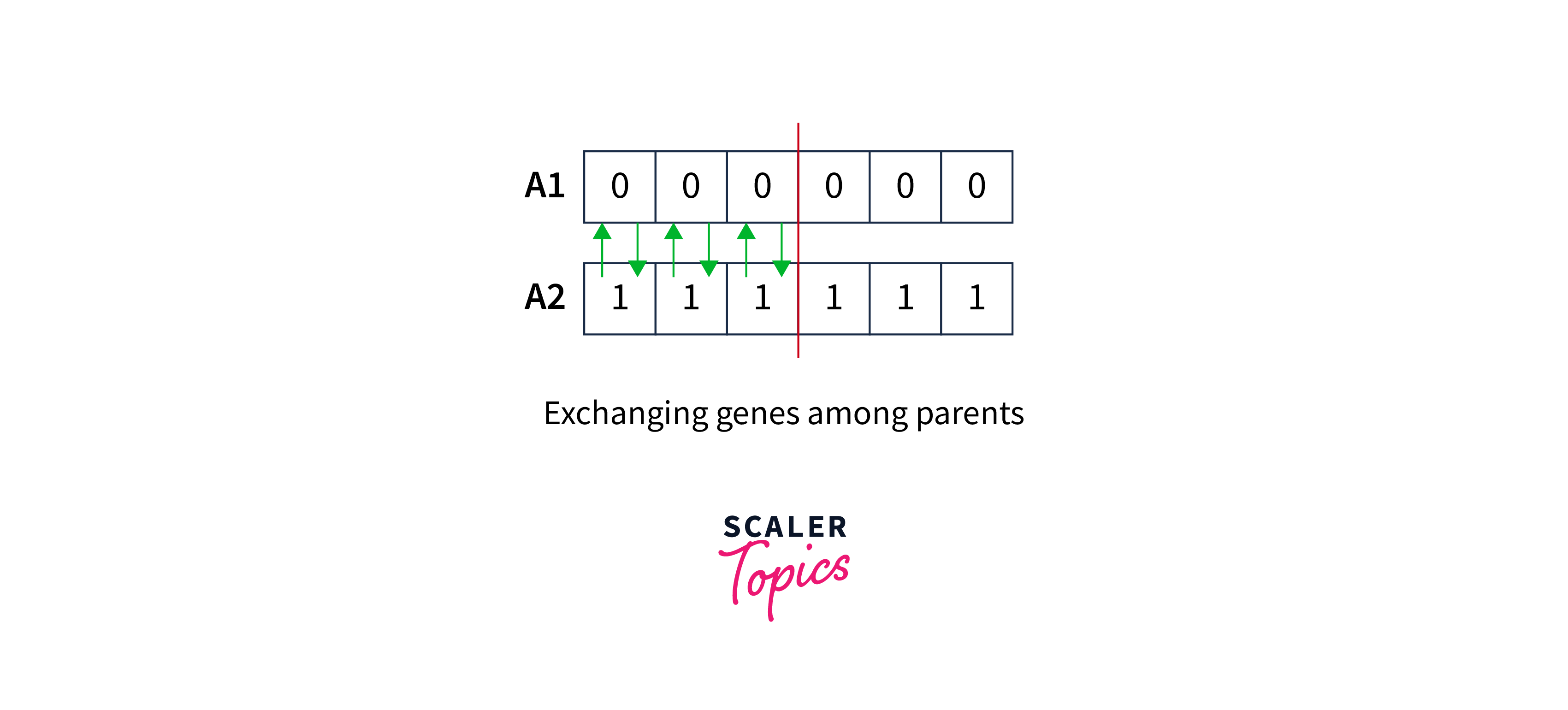 Offspring are then generated by exchanging the parents' genes until the crossover point is reached.