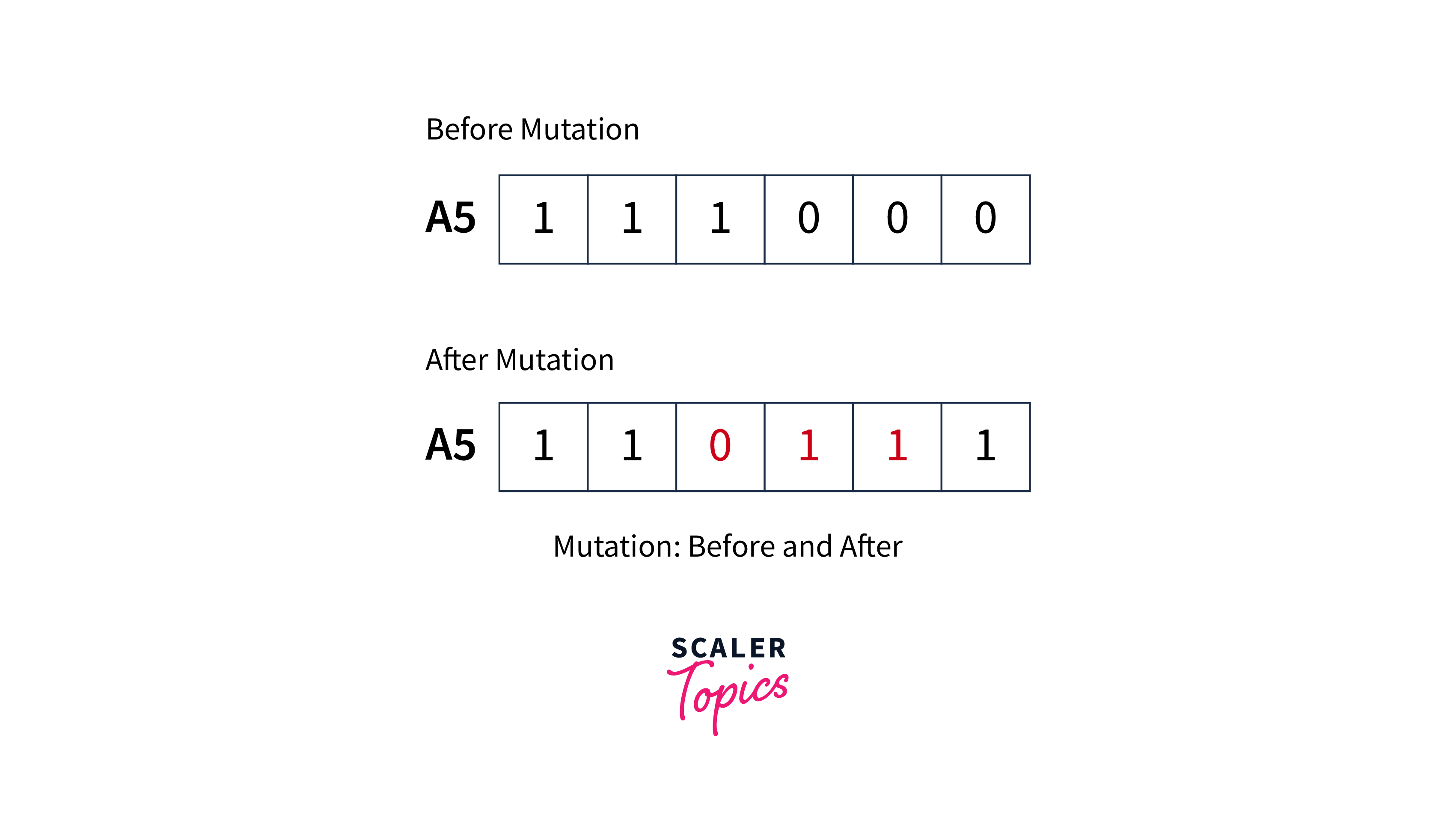 Mutation: Some newly created solutions undergo mutation, which randomly changes some of their characteristics.This implies that some bits in the bit string can be flipped.