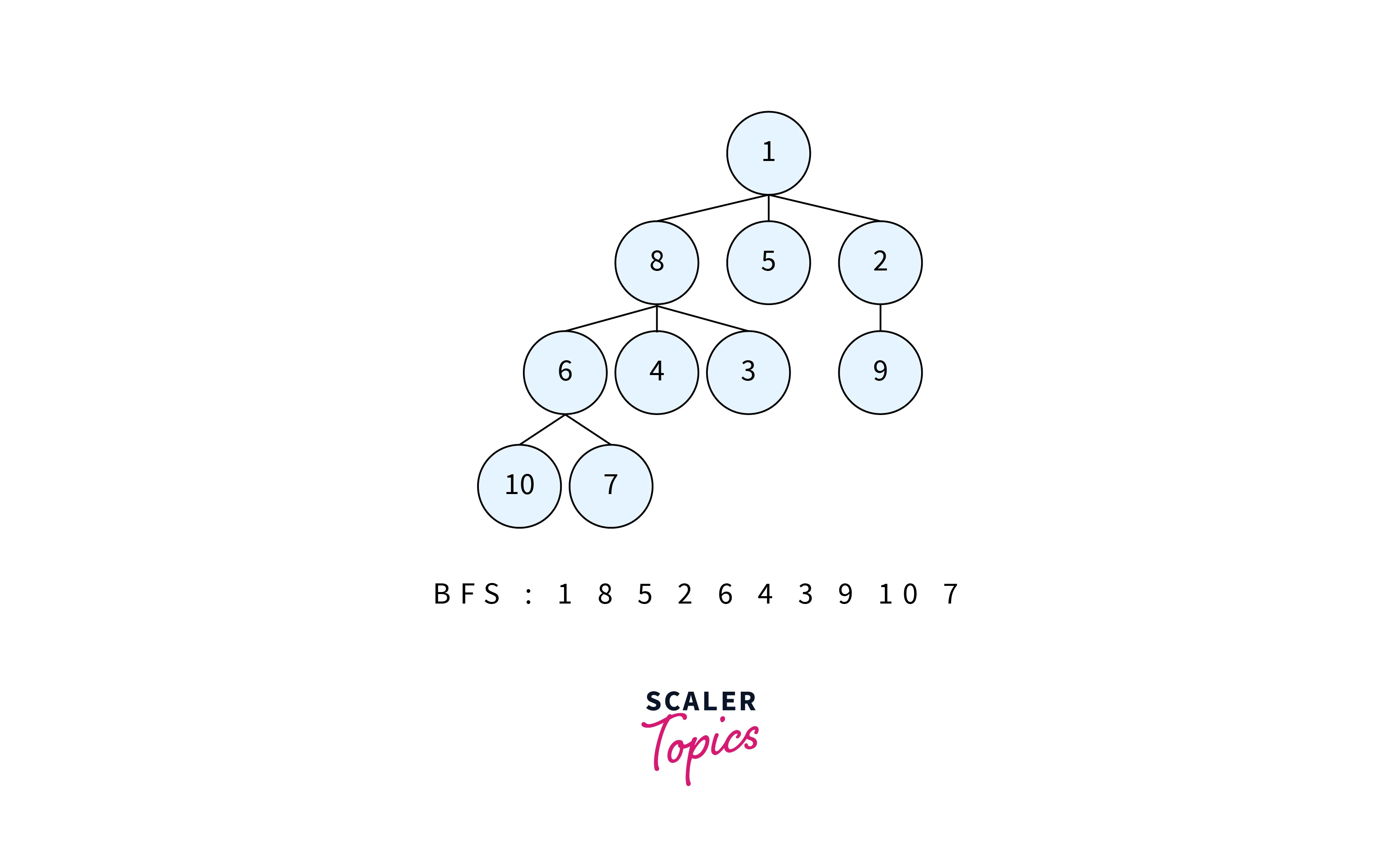- While the queue is not empty, dequeue the first node.