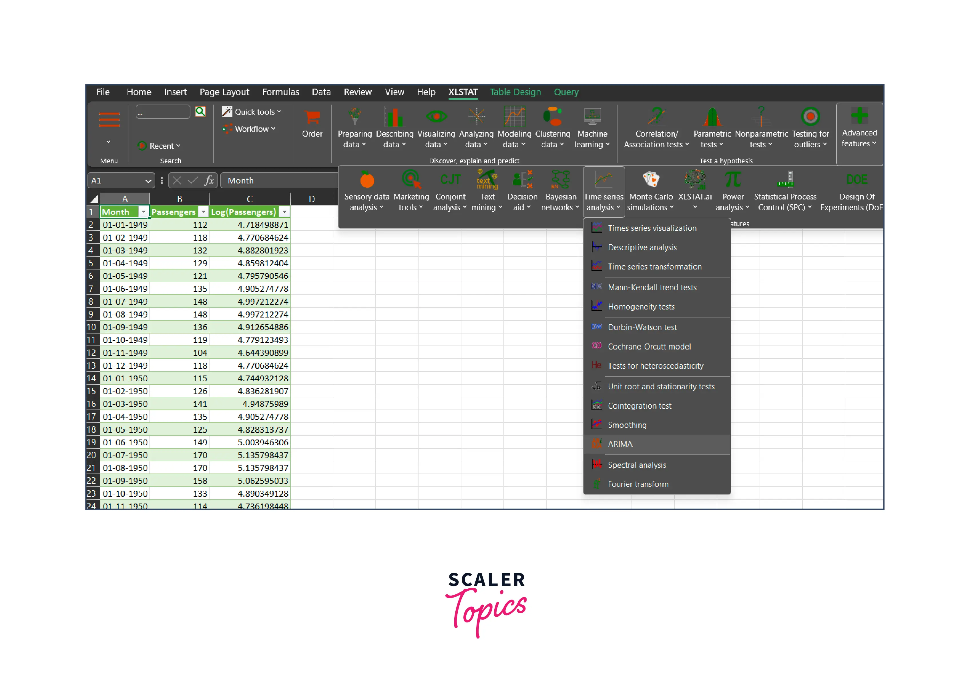 Launch XLSTAT and navigate to the Time Series Analysis section. Select the ARIMA command.