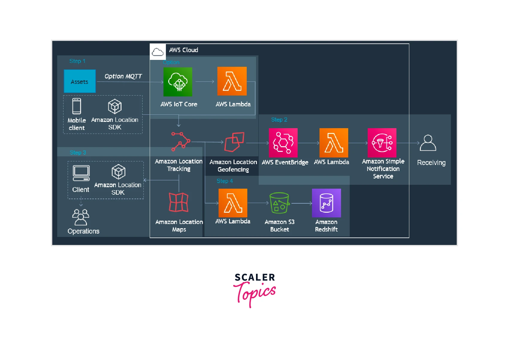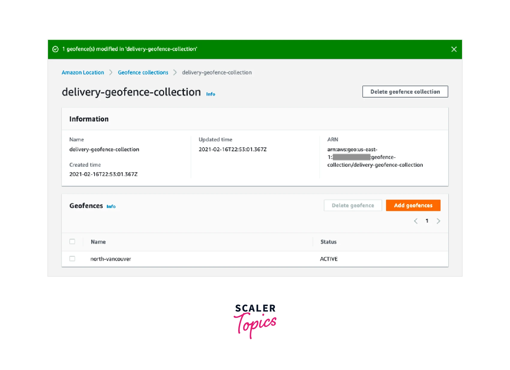 - Geofencing: With the help of this functionality, your application will be able to recognize whenever a device enters or leaves a geofence—a predetermined geographic boundary—and take appropriate action. An entry or leave event is immediately sent to Amazon EventBridge if a geofence breach is discovered. This can assist you in notifying your target.
