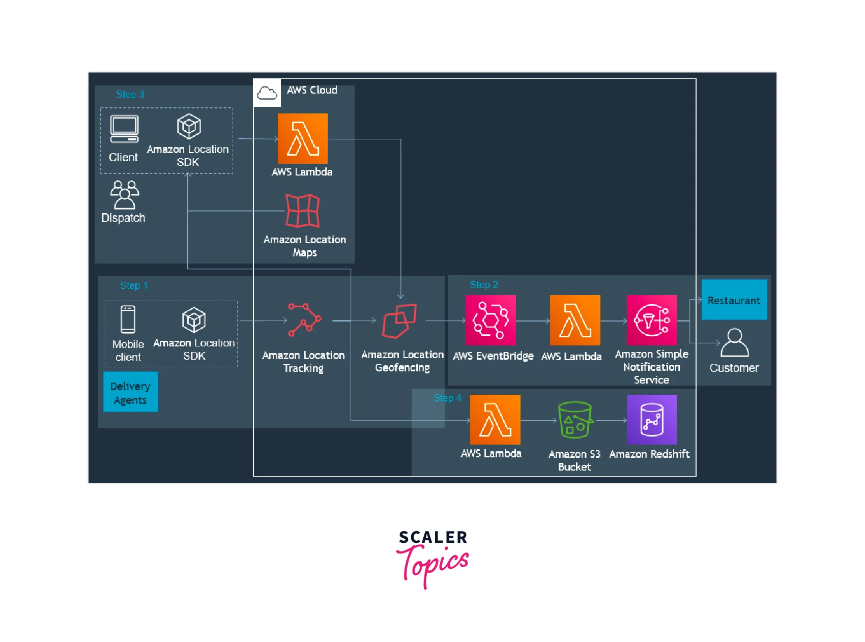 With the aid of this architecture, you will be able to start actions based on the proximity of delivery agents, show driver locations as well as pick-up and drop-off locations, save delivery agent positions on a map, examine location history, etc.