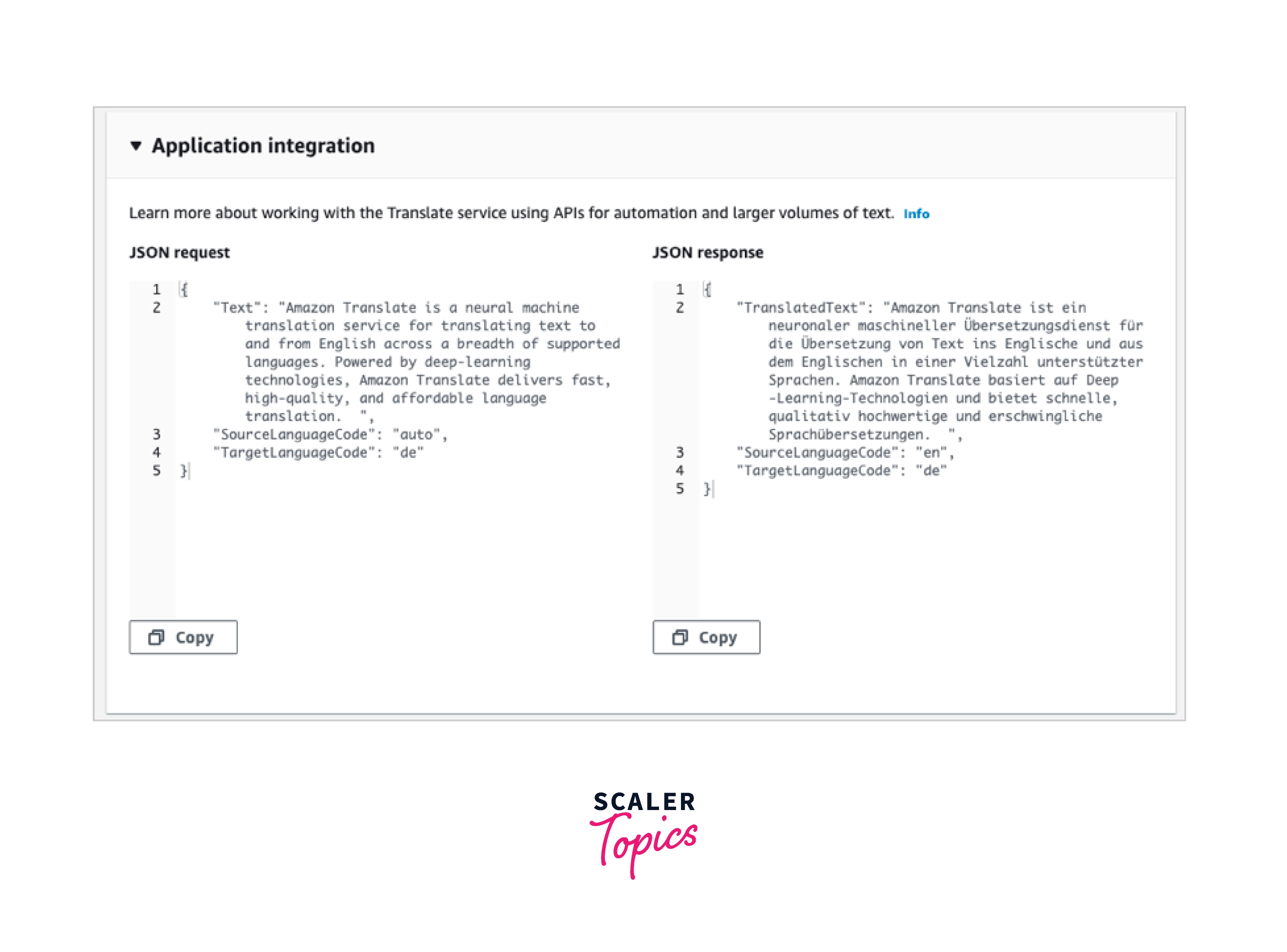 When using Amazon Translate, you will supply the original text and receive the translated text: