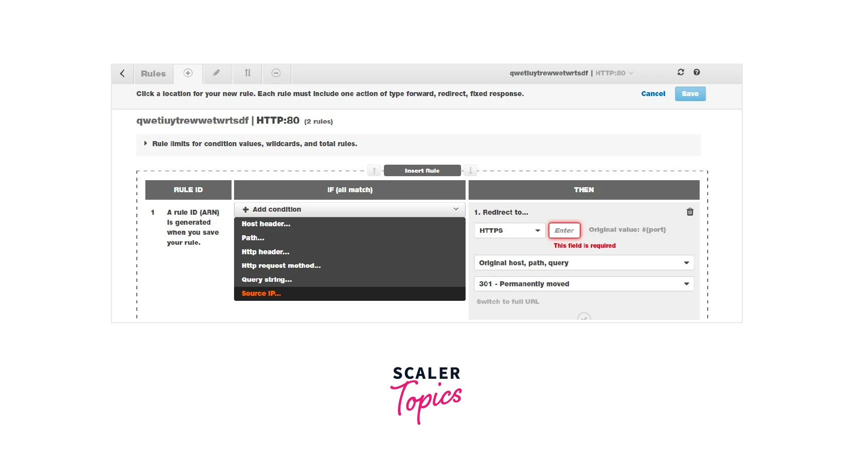 | Redirect to | If the request is received, the AWS application load balancer will redirect the request to the specified URL with port |
