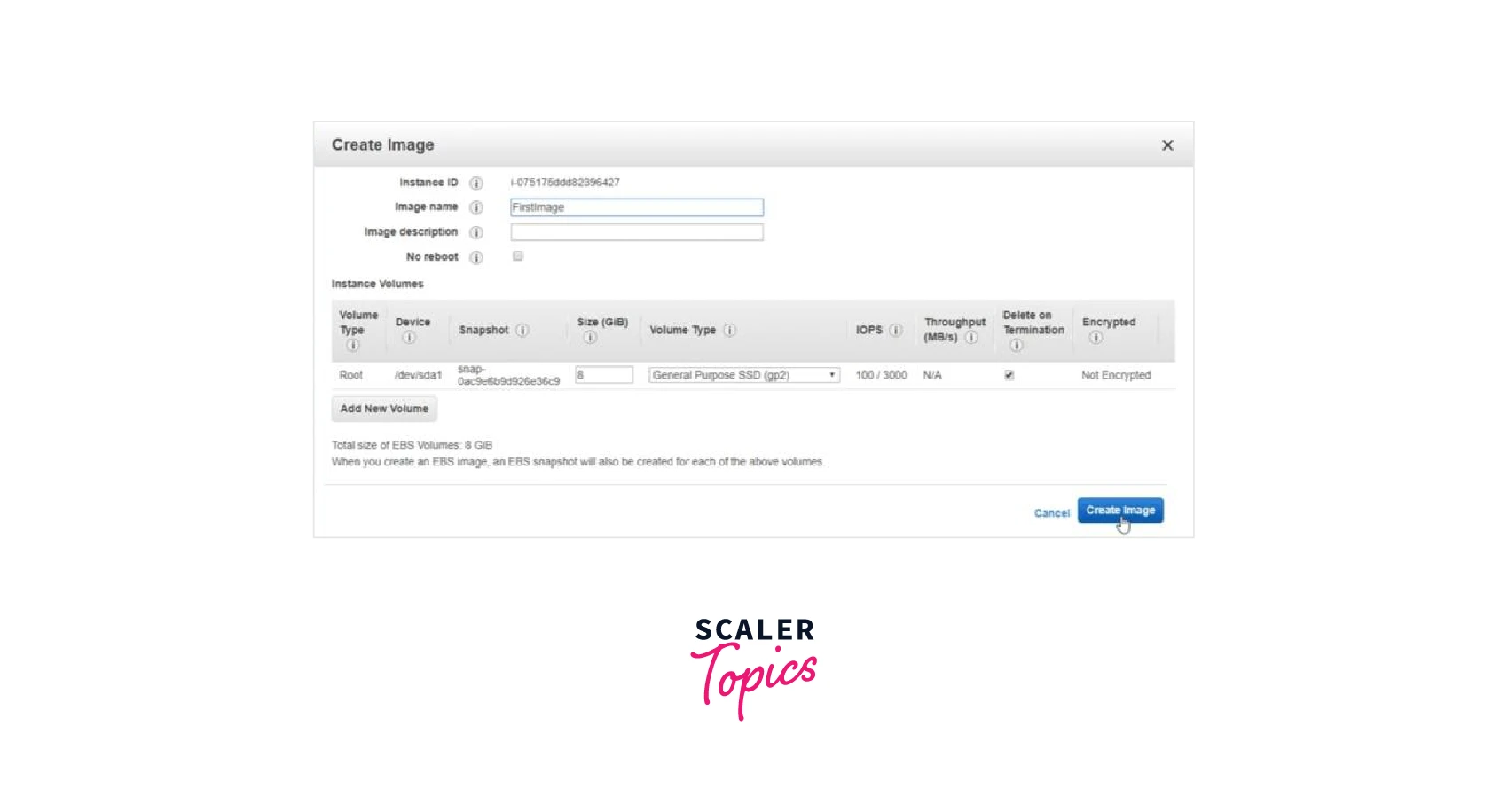 Step 2: Provide a name for your image and don't change the rest of the settings on that page, and then click on Create Image.