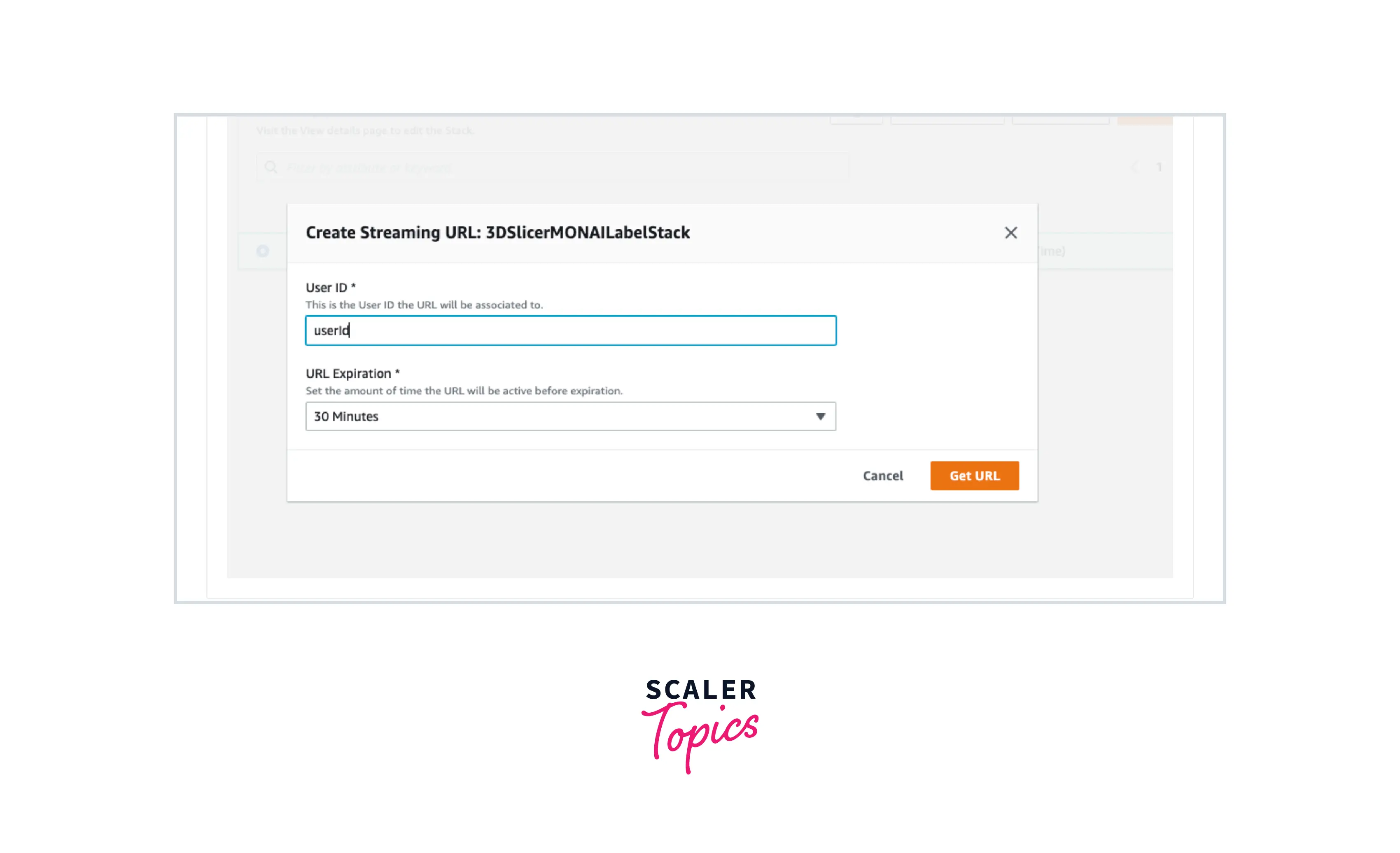 - Fill in the details such as 'User id'. Mark an expiration time for it, which tells for how long the generated URL is valid.
