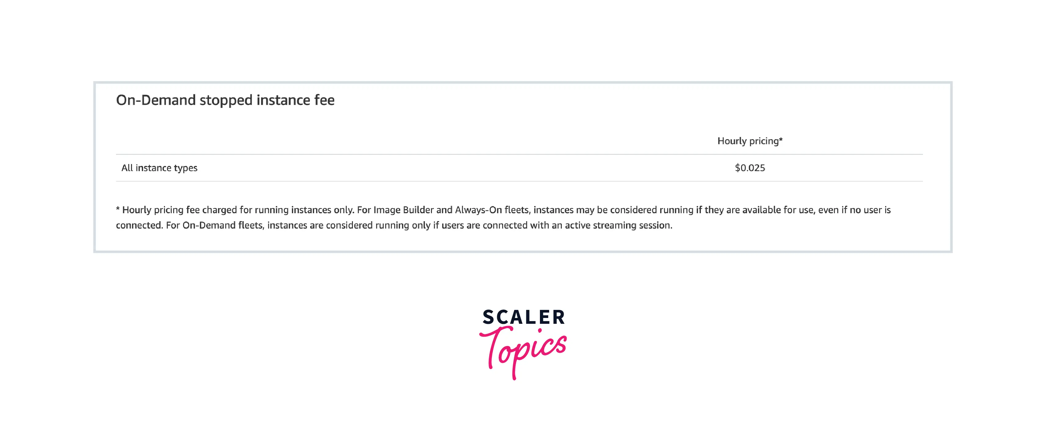 Charged hourly for Windows Always-on fleet instances whereas charged on one-second increments( a minimum of 15 minutes) for Linux Always-on fleet instances. -