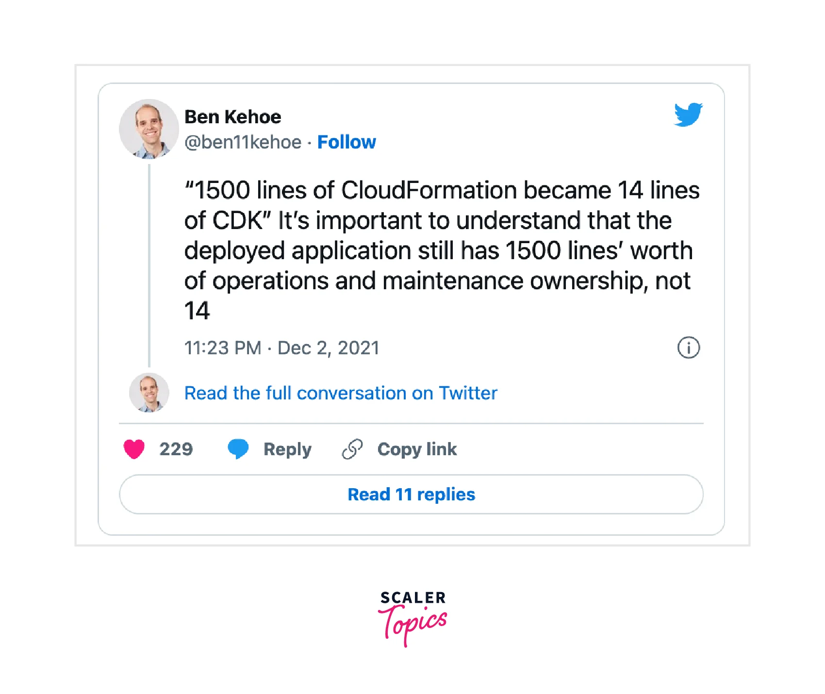 - With AWS CDK, you can start by gaining expertise by learning and over time mastering the programming language of your choice (Writing code daily has a transferable effect in another technical job) than writing a YAML file in AWS CloudFormation.