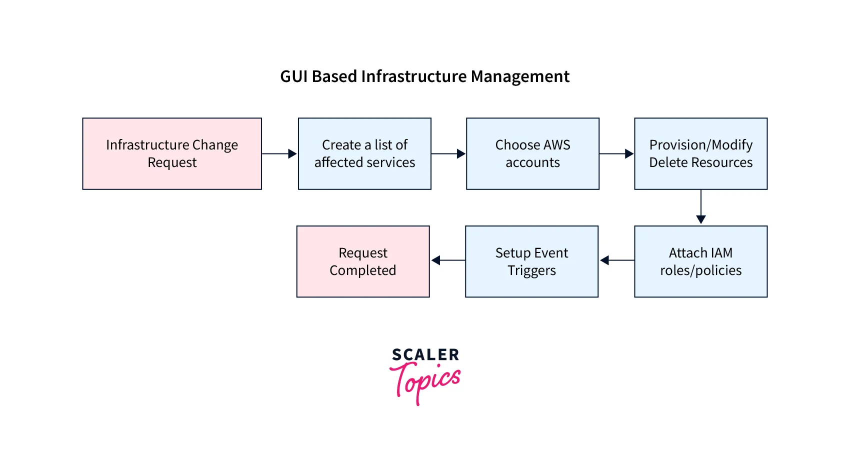 With Manual infrastructure deployment, you either need to use the GUI(graphical user interface) or CLI(command line interface). This involves manual intervention, difficulty in sharing, the creation of a new environment that is not repeatable, not reliable, and consistency is not maintained. The run books(documents containing information about how to set up and run tasks) have to be up to date in addition knowledge transfer is necessary when a change is encountered. Also, when an application uses multiple cloud resources, you will have to spend the same amount of time n number of time for each of the services associated along with ensuring the inter-service permissions are correctly set.