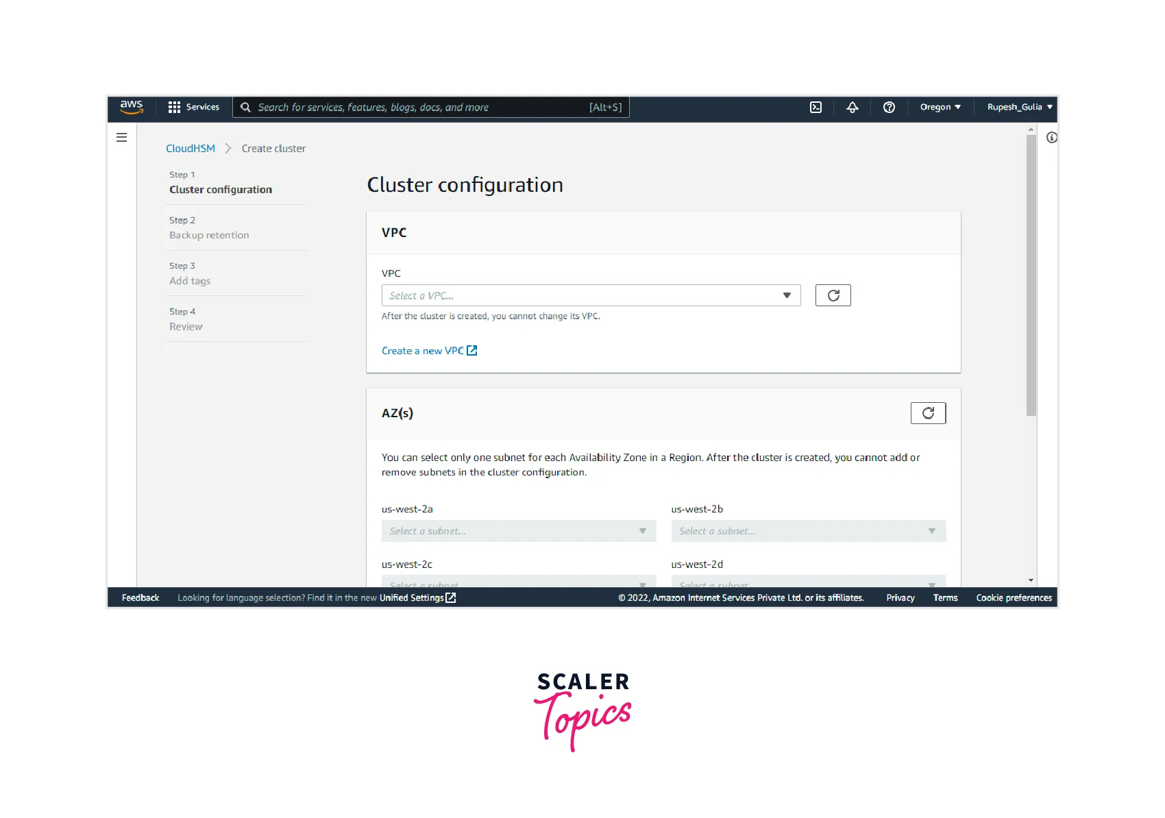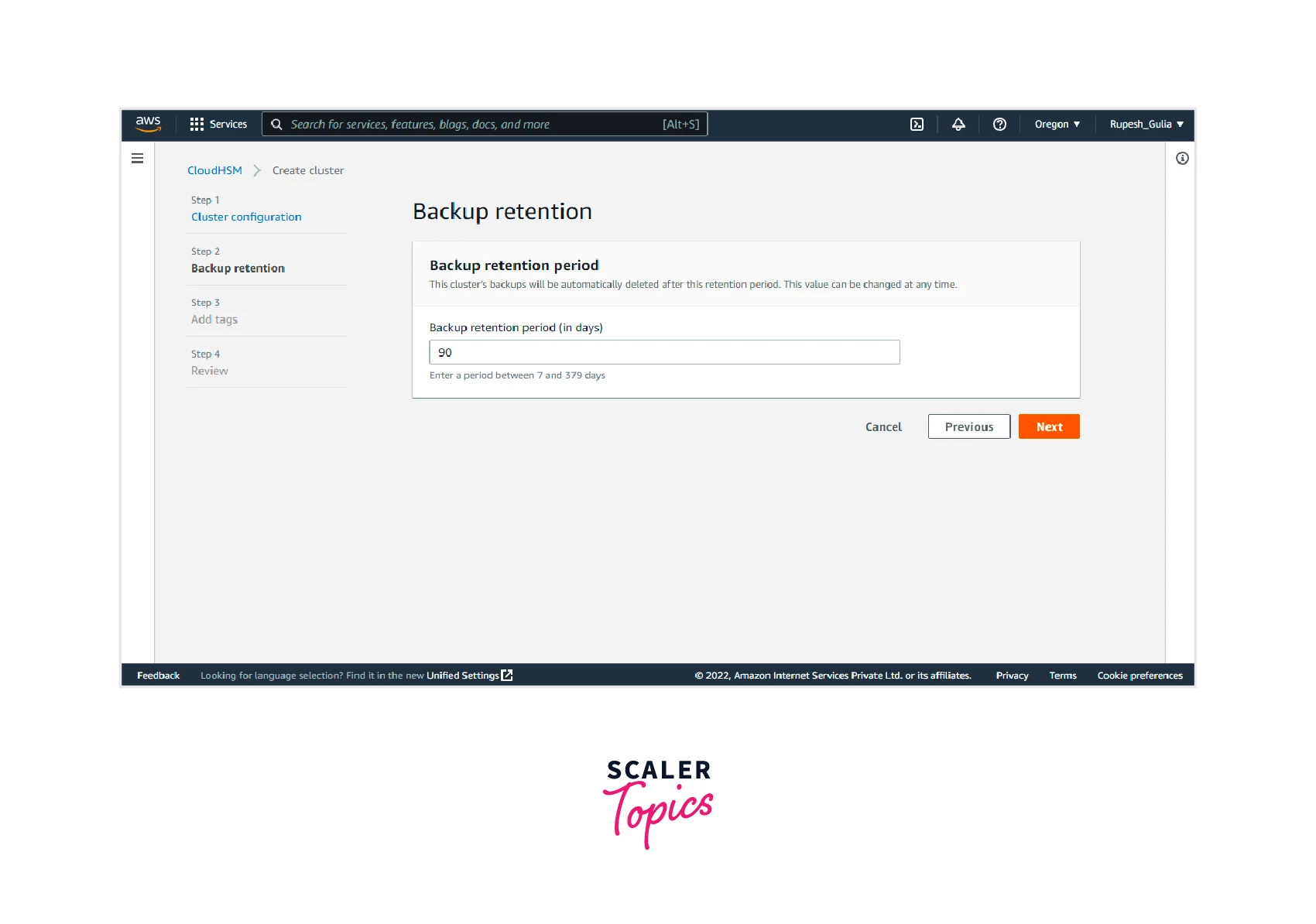 - Step 2: Next step is to specify the Backup retention period, after which the cluster’s backups will be automatically deleted, which can be changed at any time. Then click on Next.