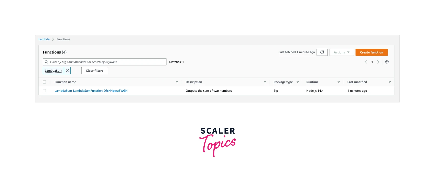 - You can now go to the Lambda page in AWS Console. You will see that there is a "LambdaSum" AWS Lambda Function created. '