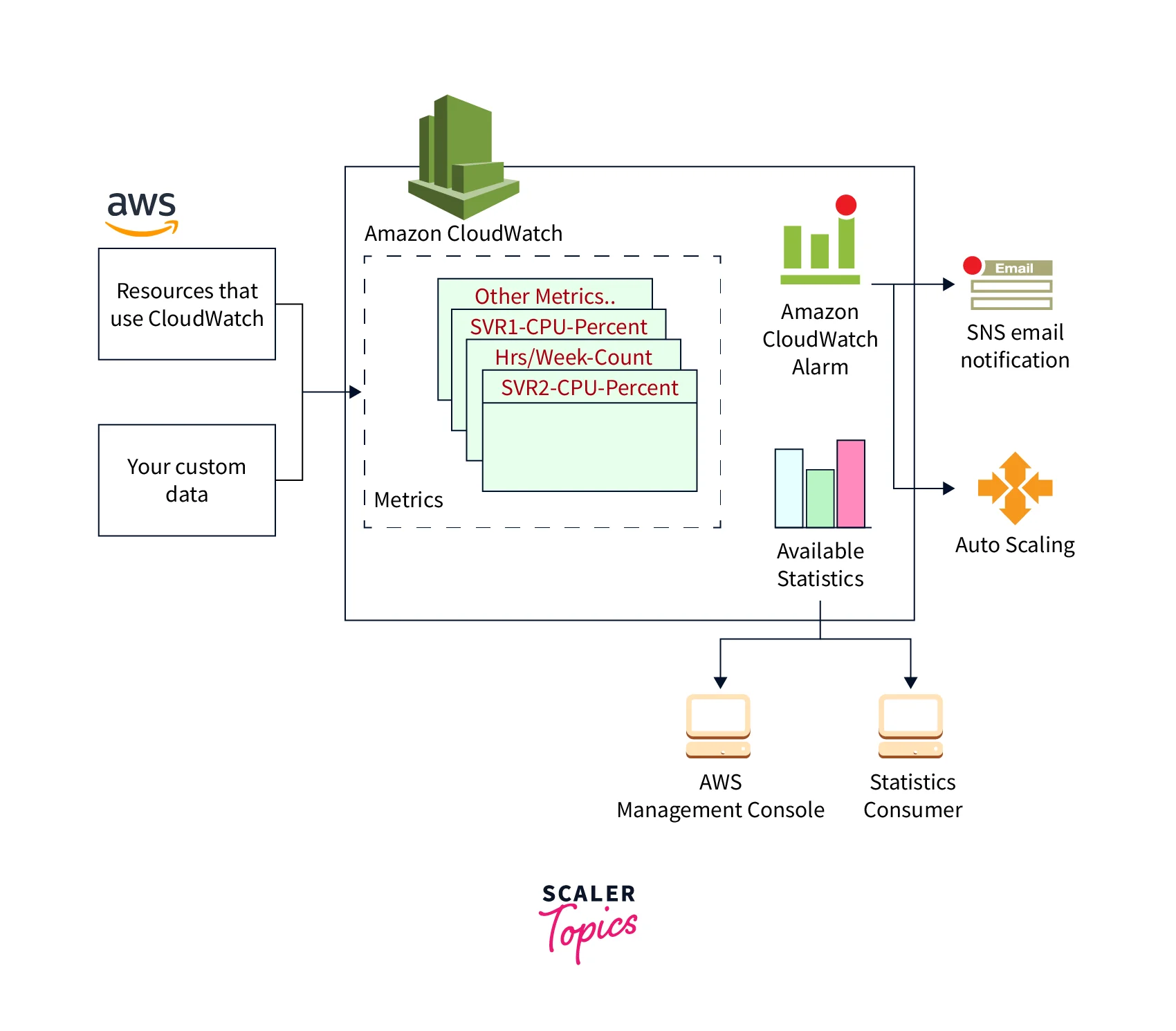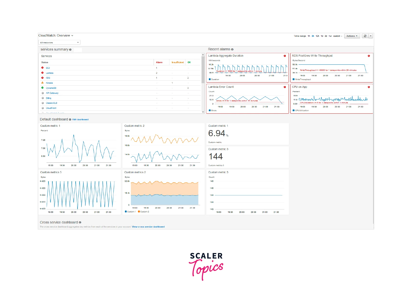 AWS CloudWatch Alarm : The AWS CloudWatch Alarm continuously monitors CloudWatch metrics. An alarm is raised if a measure (or metrics) exceeds the predetermined or preset thresholds. The AWS CloudWatch dashboard may also show the status of the alarm.