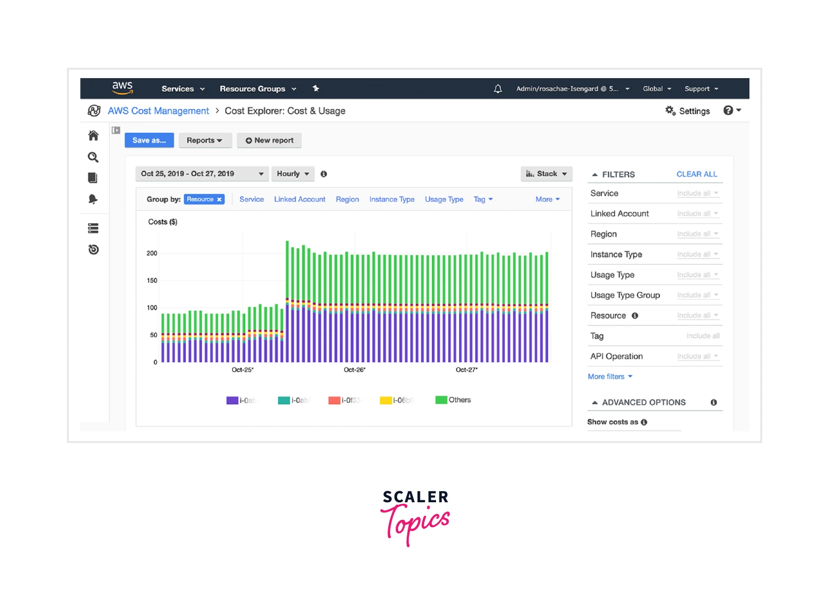 Hourly and Resource Level Detailed Granularity We can visualize, acknowledge, understand, and manage the AWS cost incurred and data usage for daily or monthly level granularity. We can also dig deeper through detailed filtering and grouping dimensions like Usage Type and Tags with additional functionality to access the data by enabling hourly and resource-level detailed granularity as shown below.