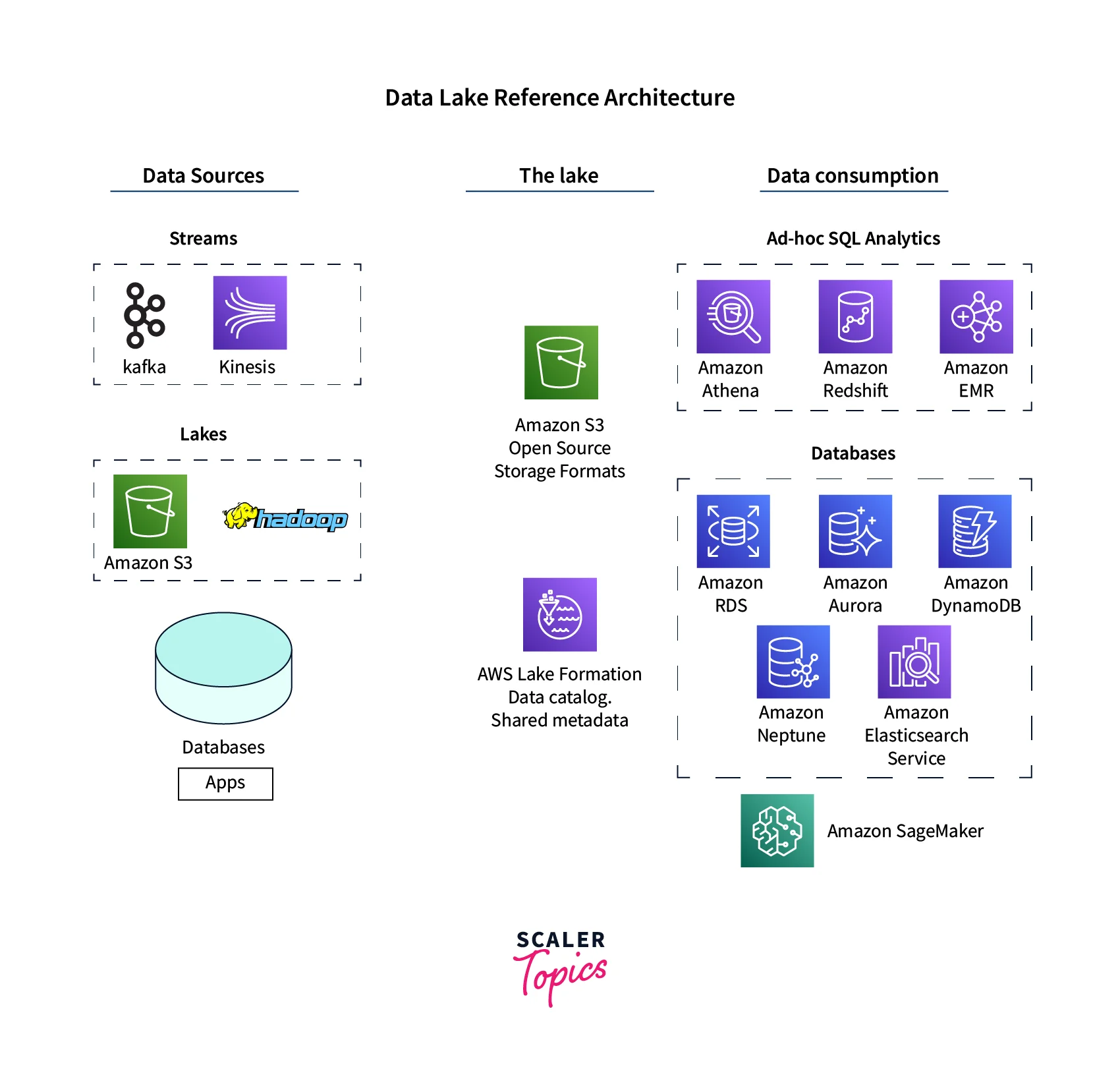 - It uses popular big data frameworks like Apache Hadoop, Hive, or Presto, aiding the AWS Data Lake Architecture.