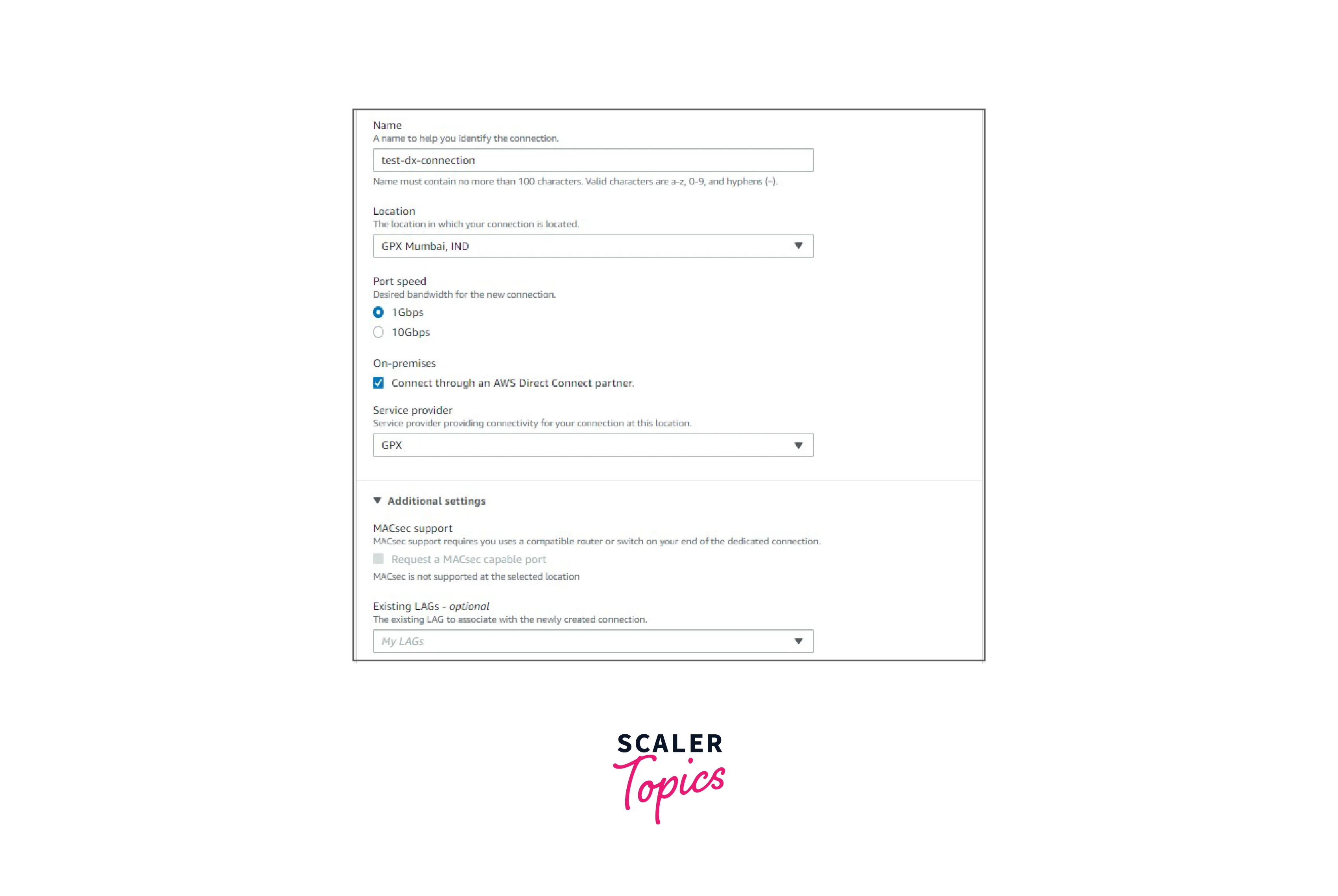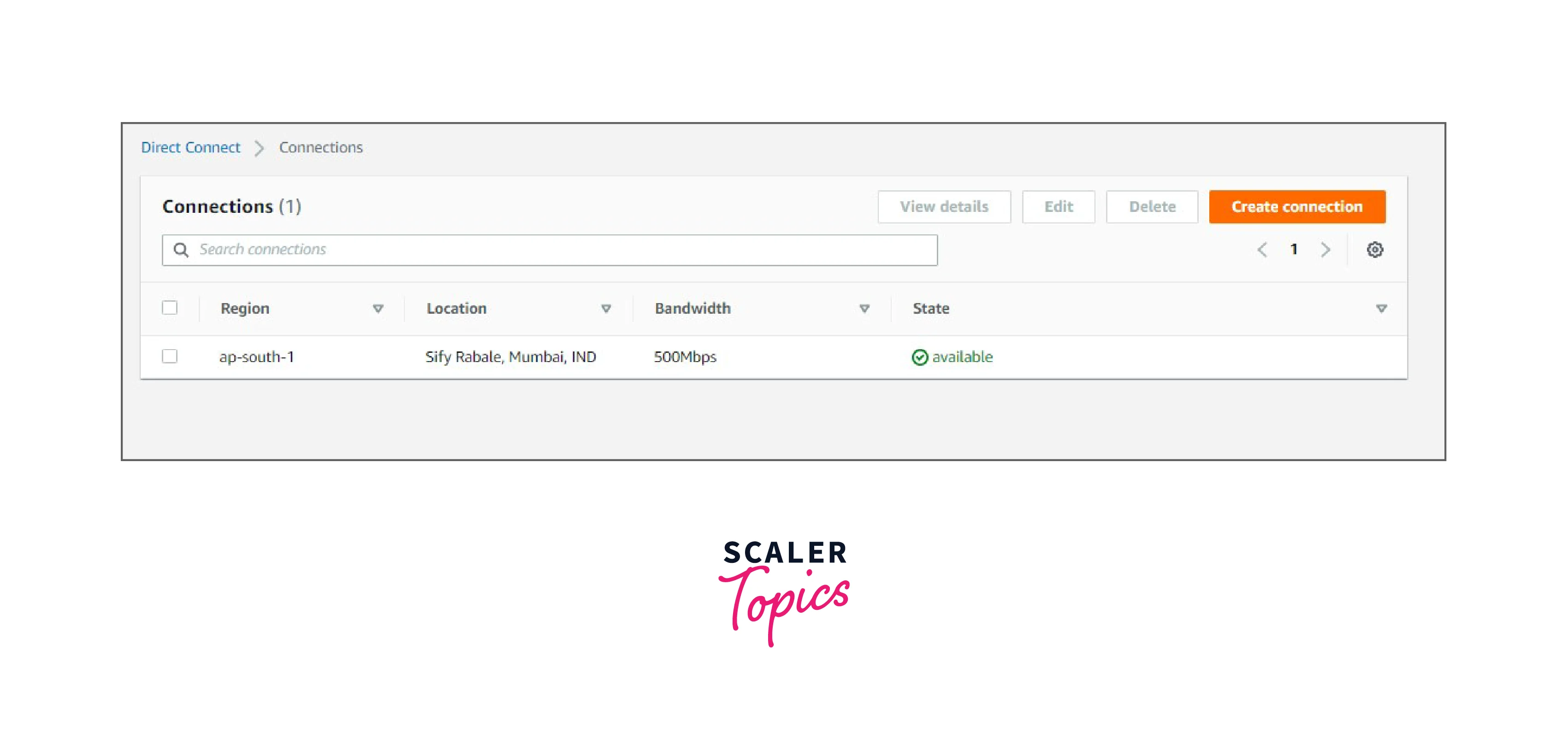 - AWS provides a starting speed range of 10Mbps and a maximum scaled up to 100Gbps as per the customer requirements based on the Dedicated Connection.