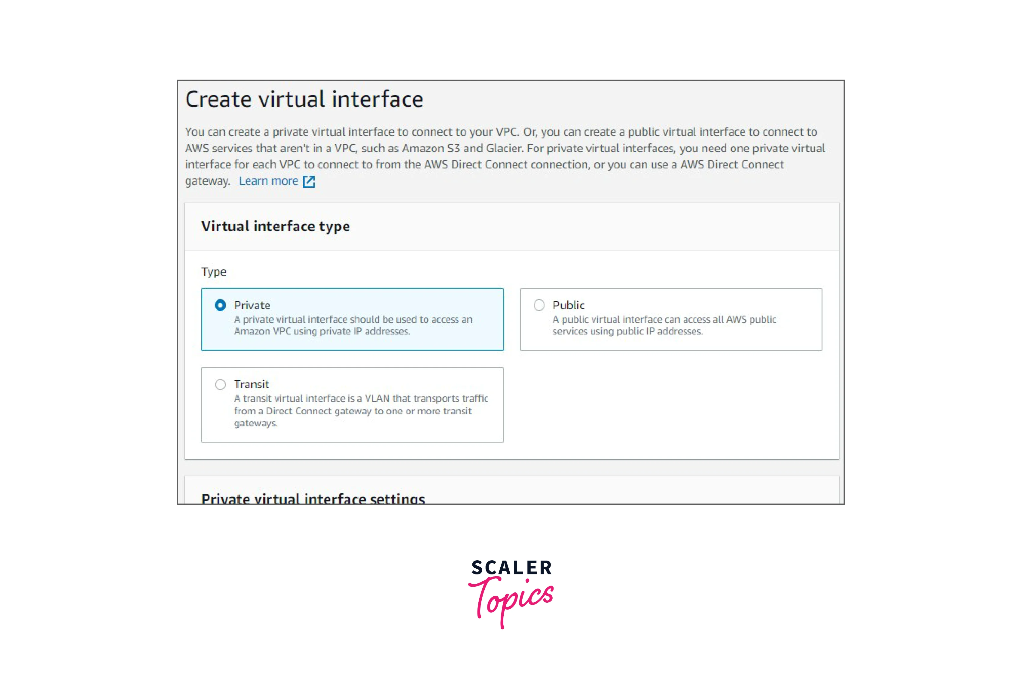 There are 3 types of virtual interfaces (VIF) available in AWS Direct Connect. We can opt for any one virtual interface to connect to the provisioned direct connect connection.