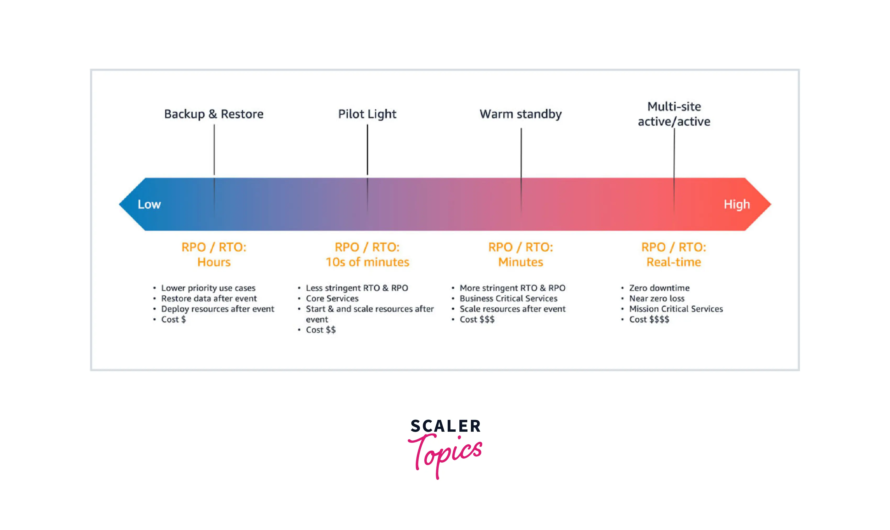 - Low RTO as the full backup system is kept in standby mode, which needs to be started with auto-scaling enabled.