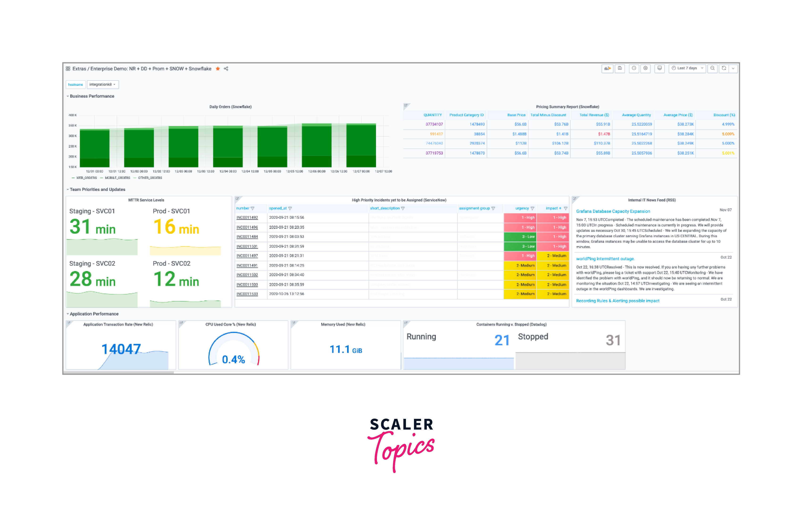 A: Grafana is an open-source analytic and interactive web application that runs on several platforms. When linked to supported data sources, it generates charts, graphs, and alarms for the web. Grafana Enterprise, a licensed version with enhanced functionality, is now available as a self-hosted deployment or as an account on the Grafana Labs cloud service. It may be expanded via a plug-in system. Using interactive query builders, end users may develop complicated monitoring dashboards. Upgrade one or more workspaces if desired; each upgraded workspace will have access to Enterprise plugins. Data from AppDynamics, Atlassian Jira, Datadog, Dynatrace, Gitlab, Honeycomb, MongoDB, New Relic, Oracle Database, Salesforce, SAP HANA, ServiceNow, VMware Tanzu Observability by Wavefront, and Snowflake may be queried and visualized.