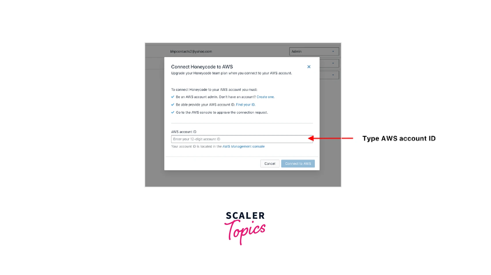 - The first thing you need to do before connecting Honeycode to your AWS Account is that you need to copy down your AWS Account ID.
