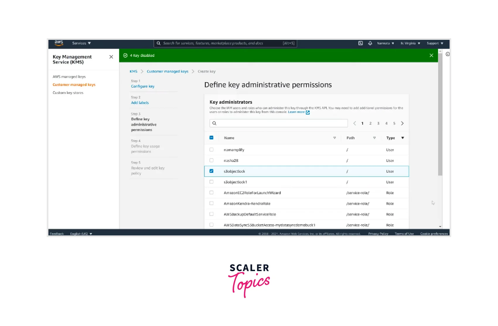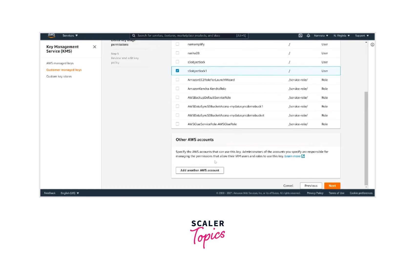 Scalability, durability, and High Availability: The AWS KMS service is completely managed. The service automatically adjusts to suit your demands as your use of Encryption develops. It allows you to manage and utilize thousands of KMS keys in your account at any time.