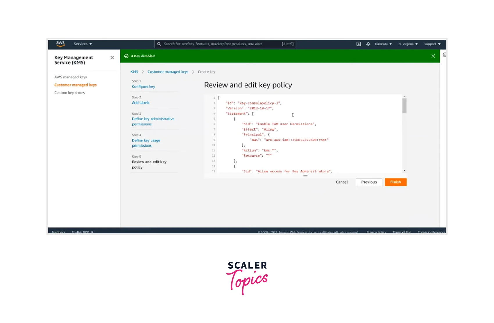 Centralized key management: It offers a solo point and regularly sets policies for use with your apps and AWS services. You may quickly generate, rotate, remove, and manage critical permissions using the AWS CLI, SDK, or management console.