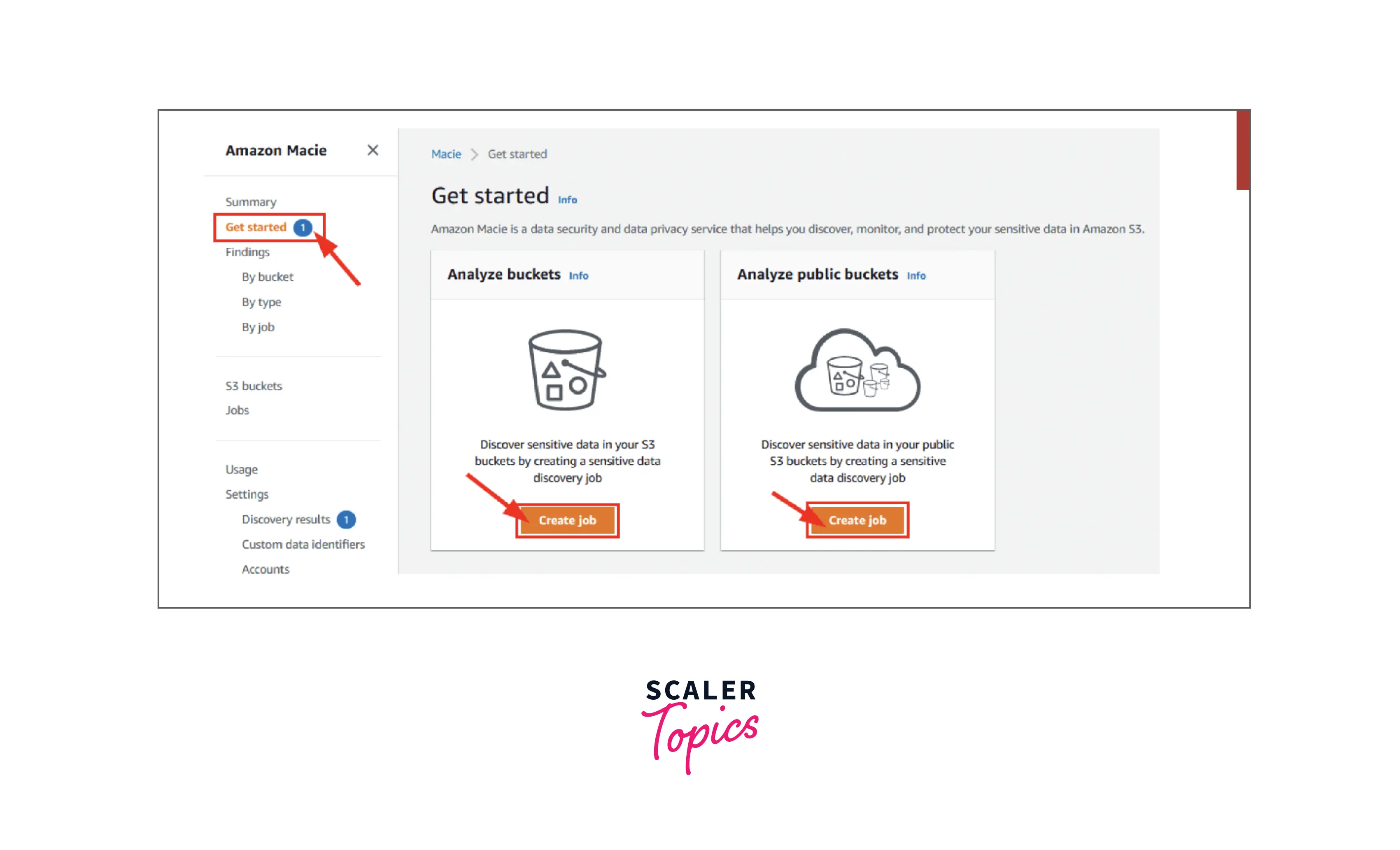 Finally, you can just click on “Get started” on the menu present on the left-hand side panel and start scheduling data discovery jobs by selecting the “Create Job” option as shown below.