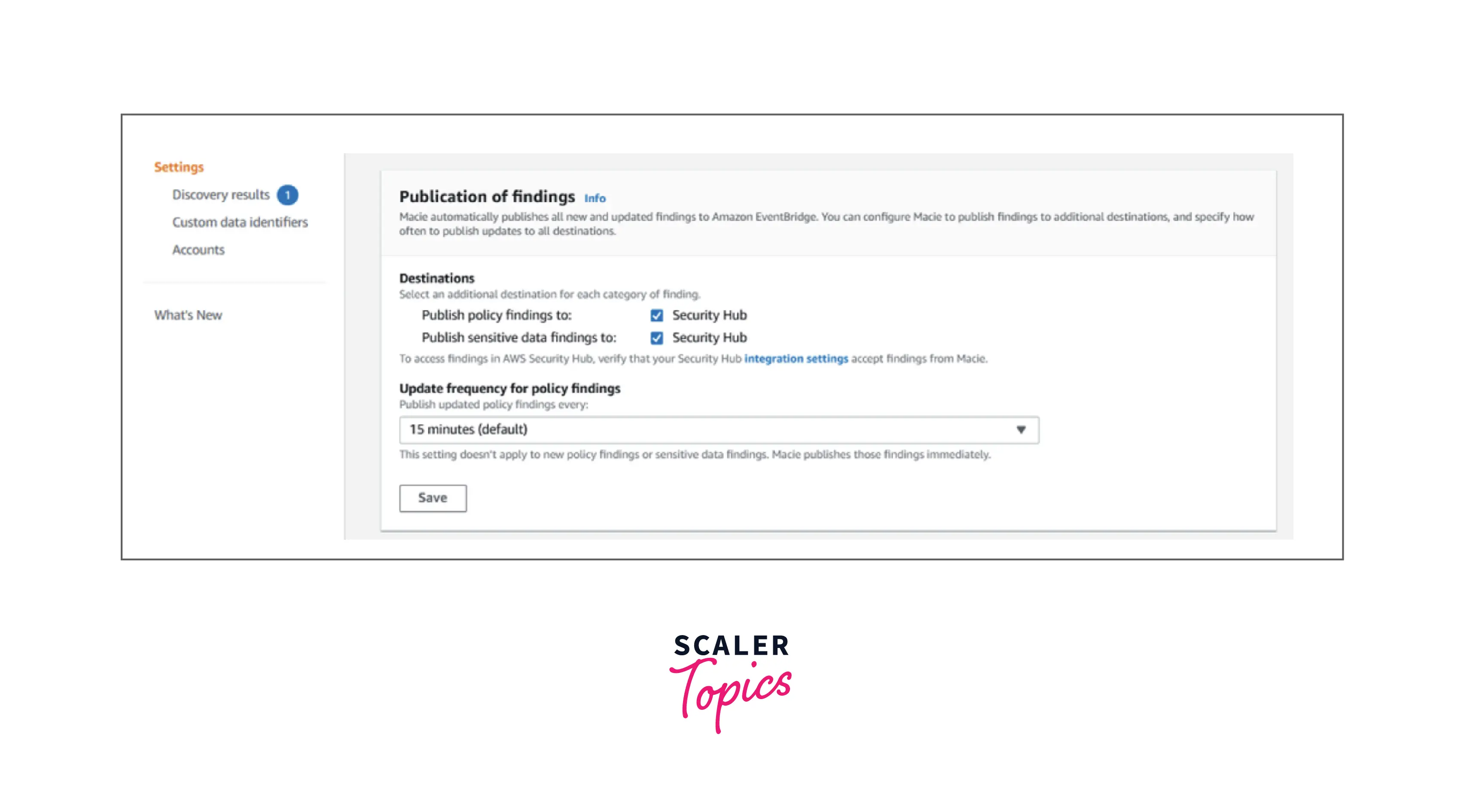 As shown above, we can select a destination for each category of findings, and simultaneously update the frequency at which the findings should be published.