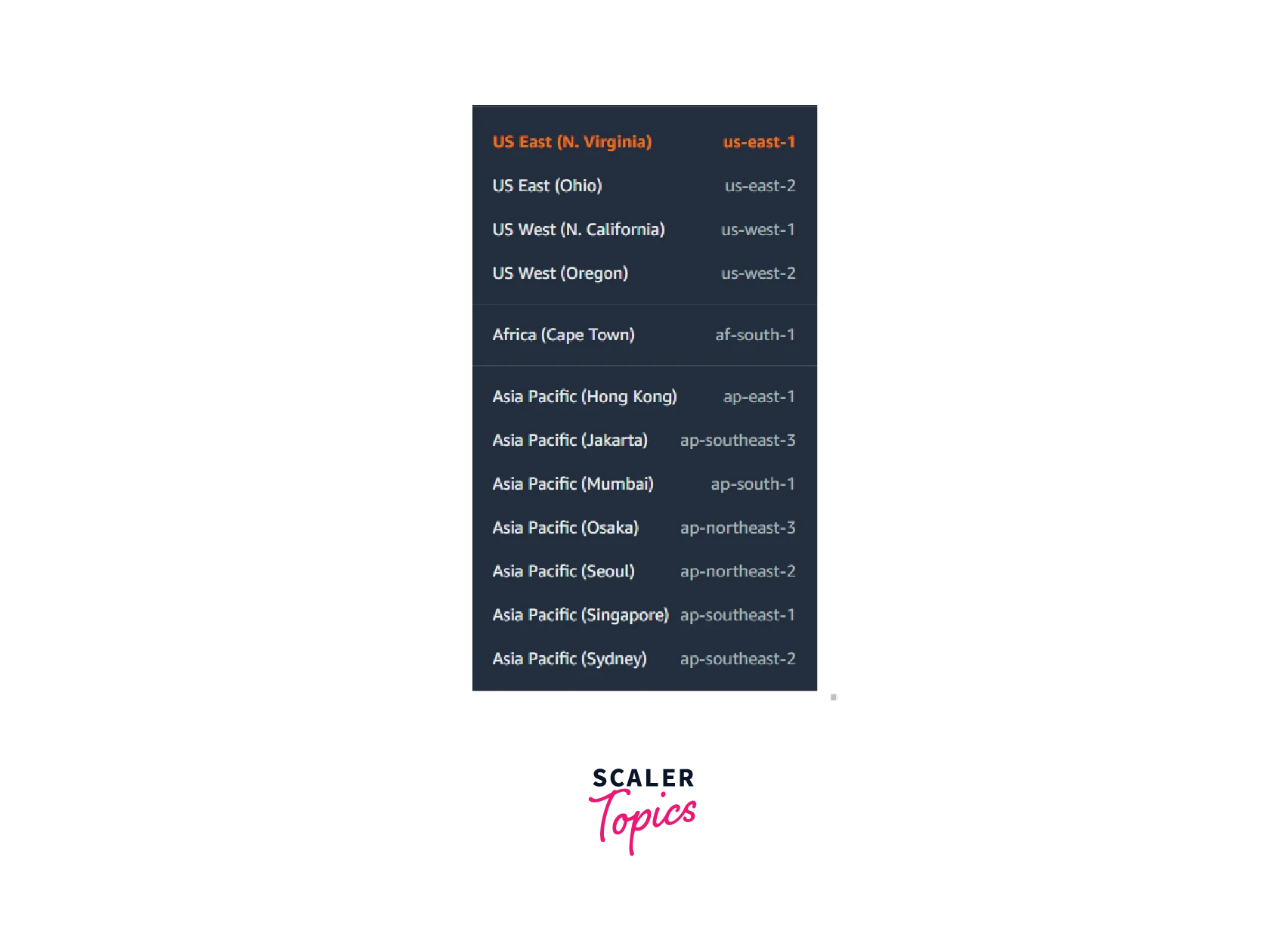 - Choose any region from the list of available AWS Regions.