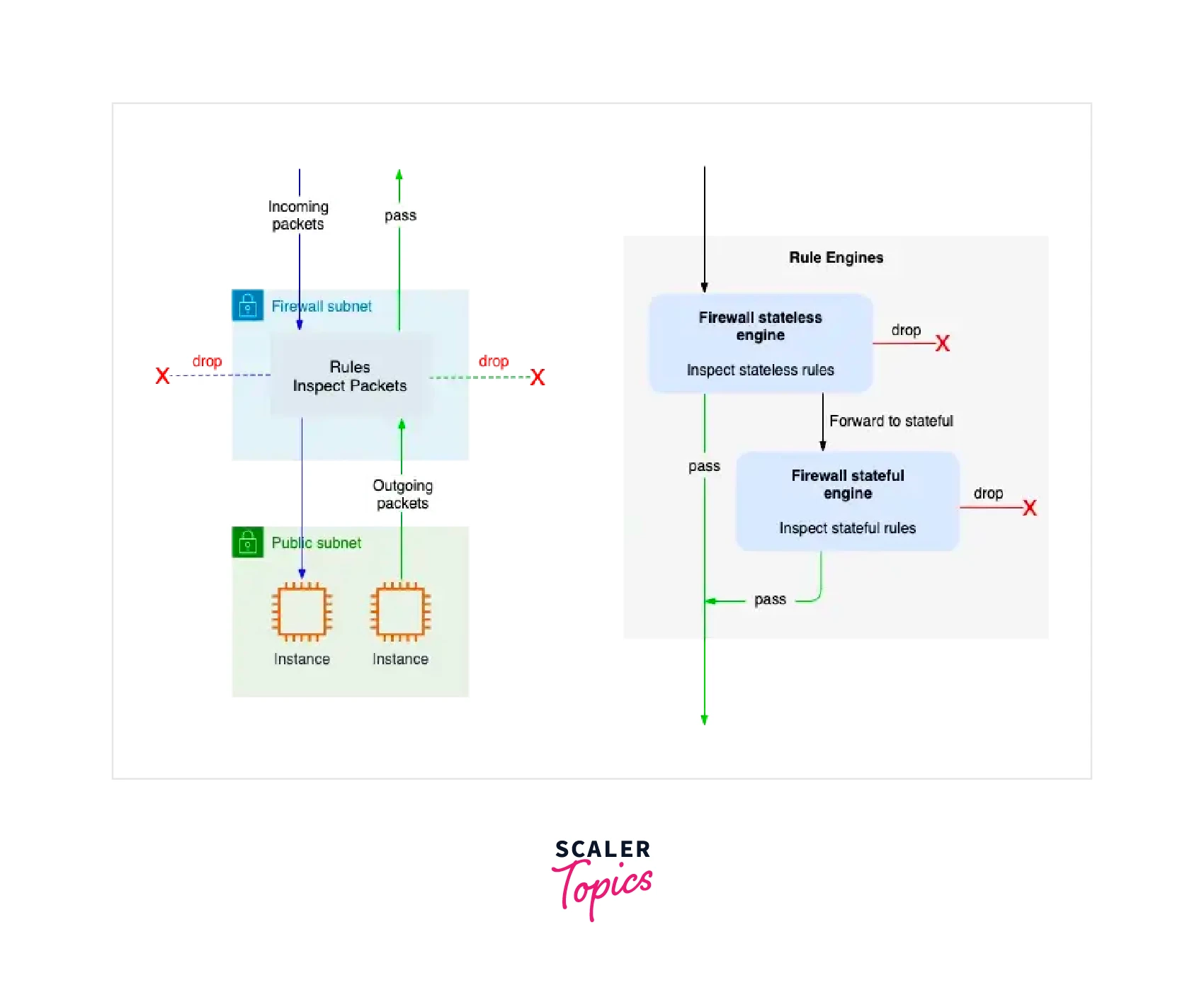 We may create firewall rules that offer us precise control over network traffic using the adaptable rule engine of AWS Network Firewall. Additionally, we can enable interfaces with managed intelligence feeds obtained by AWS partners and import rules that have previously been created in open-source rule standards. AWS network firewall works with AWS Firewall Manager to generate policies based on AWS Network Firewall rules and then implement them centrally across all of our VPCs.