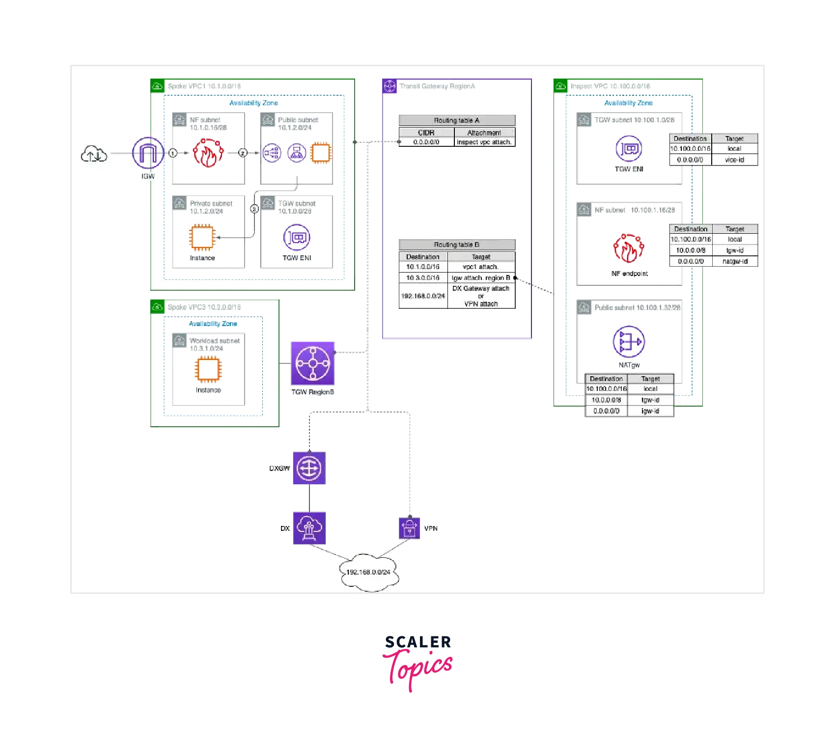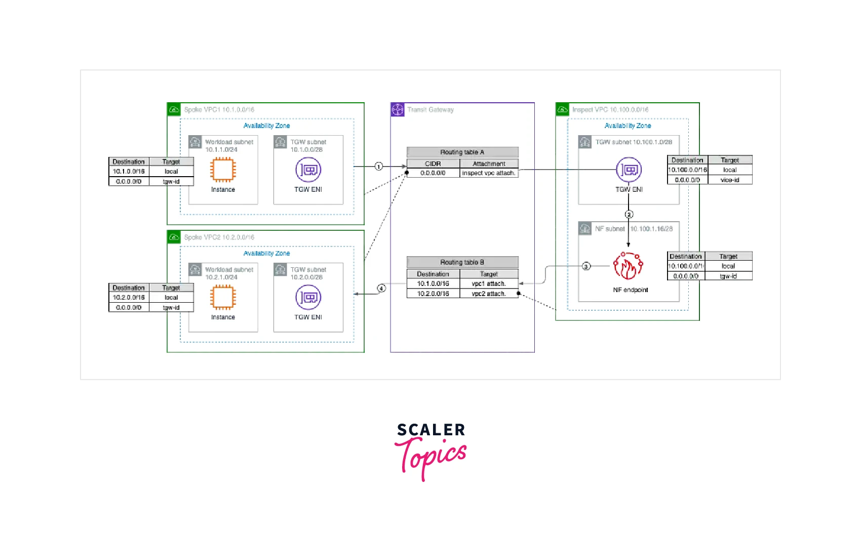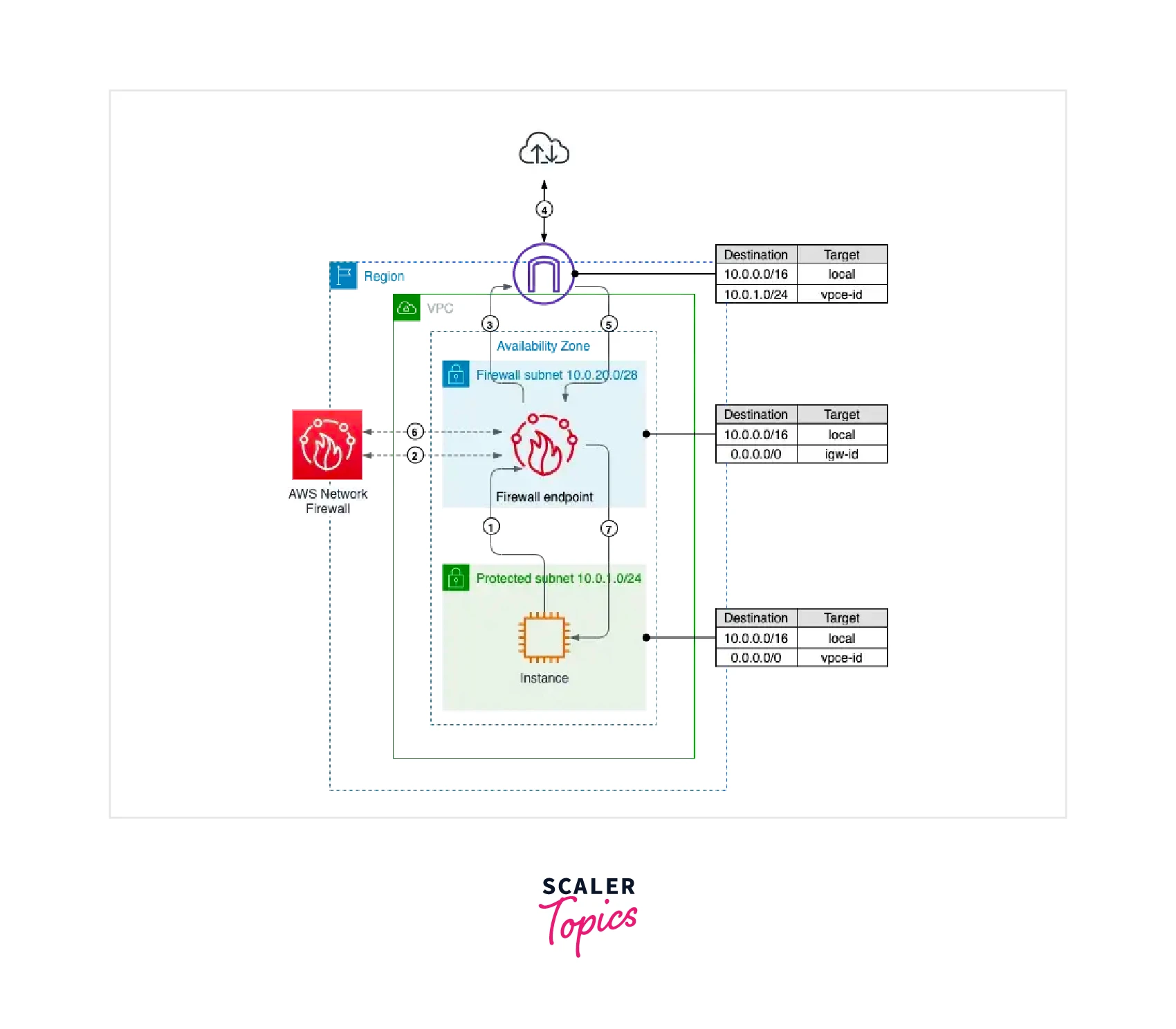 - Traffic should be routed equally to the Network Firewall endpoint so that the logic supplied by NF can be applied to the traffic-filtering logic.