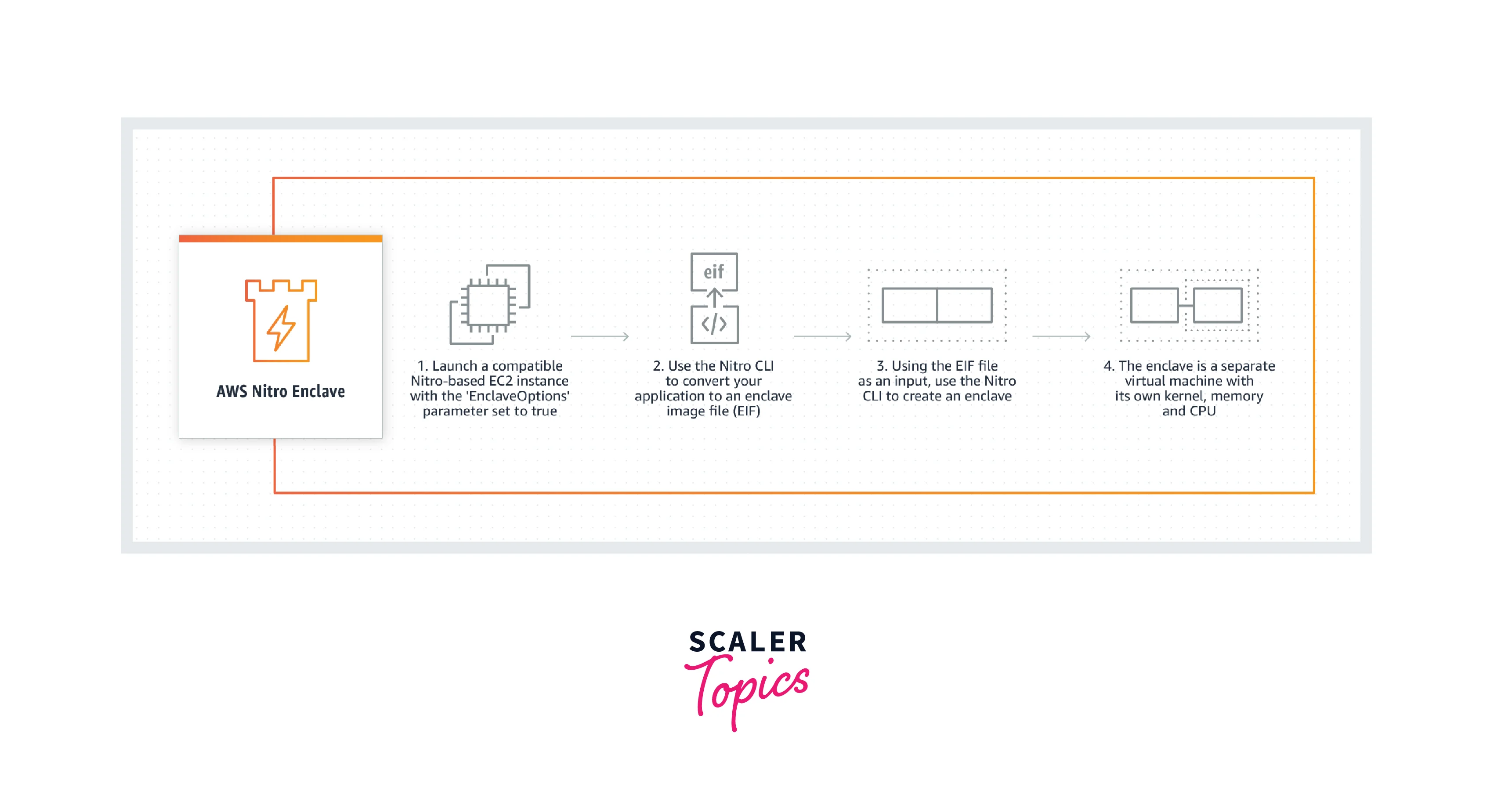 When an enclave is launched, an Enclaves Image File (.eif) contains a Linux OS, library, and any enclave programs.
