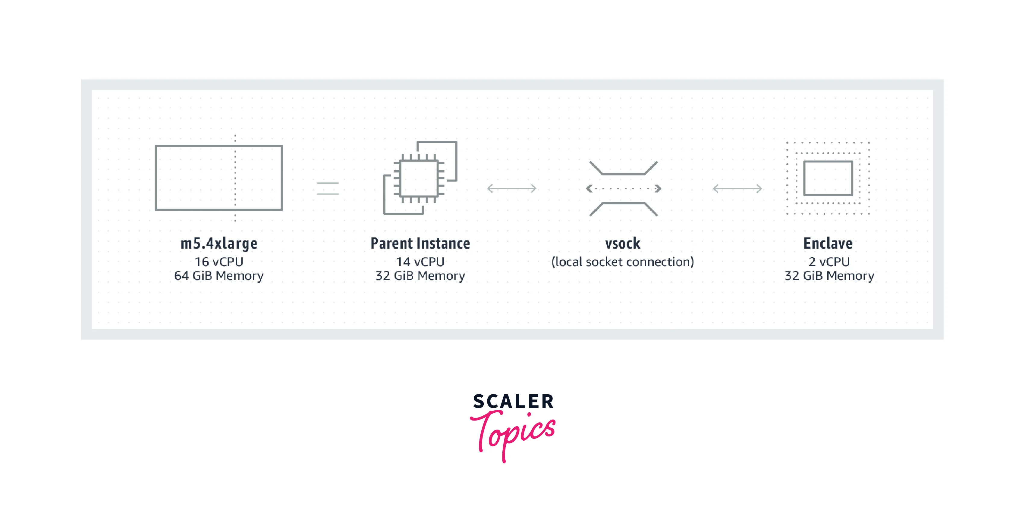 A parent instance and an enclave can communicate locally using a channel called a vsock. When interacting with outside services, an enclave can only do so over this communication channel. A context identifier (CID), which you can provide when starting an enclave, determines the vsock address of an enclave. The parent instance always employs CID 3.