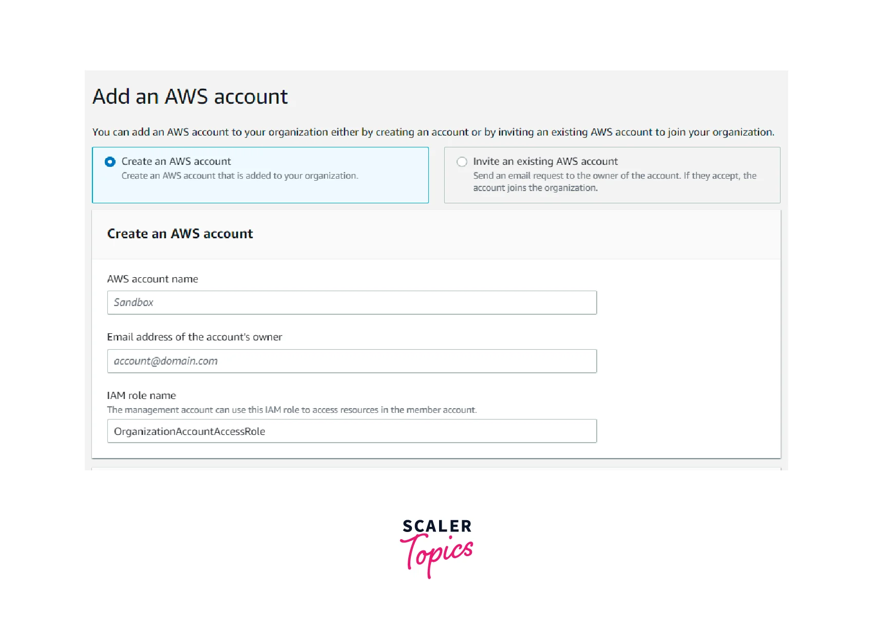 - We can create a new AWS account or add an existing AWS account to an AWS Organization.