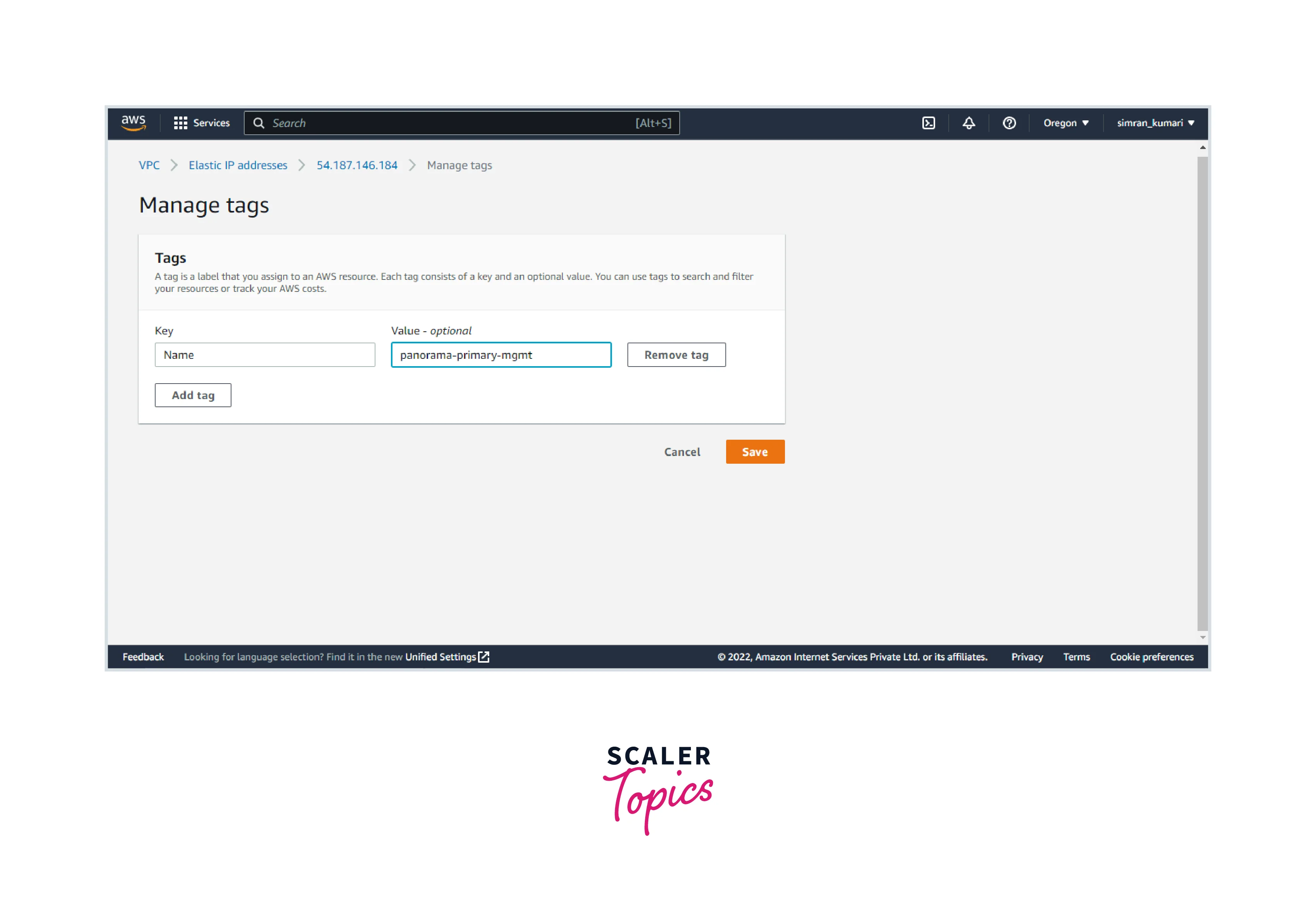 - Click on Add tag and provide a Name. Click on Save.